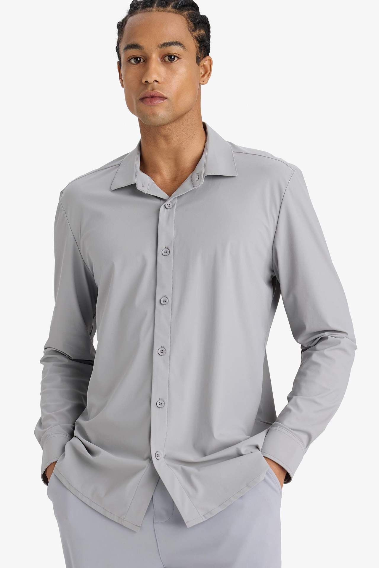 DeFactoFit Slim Fit Dar Kesim Gömlek Yaka Uzun Kollu Gömlek
