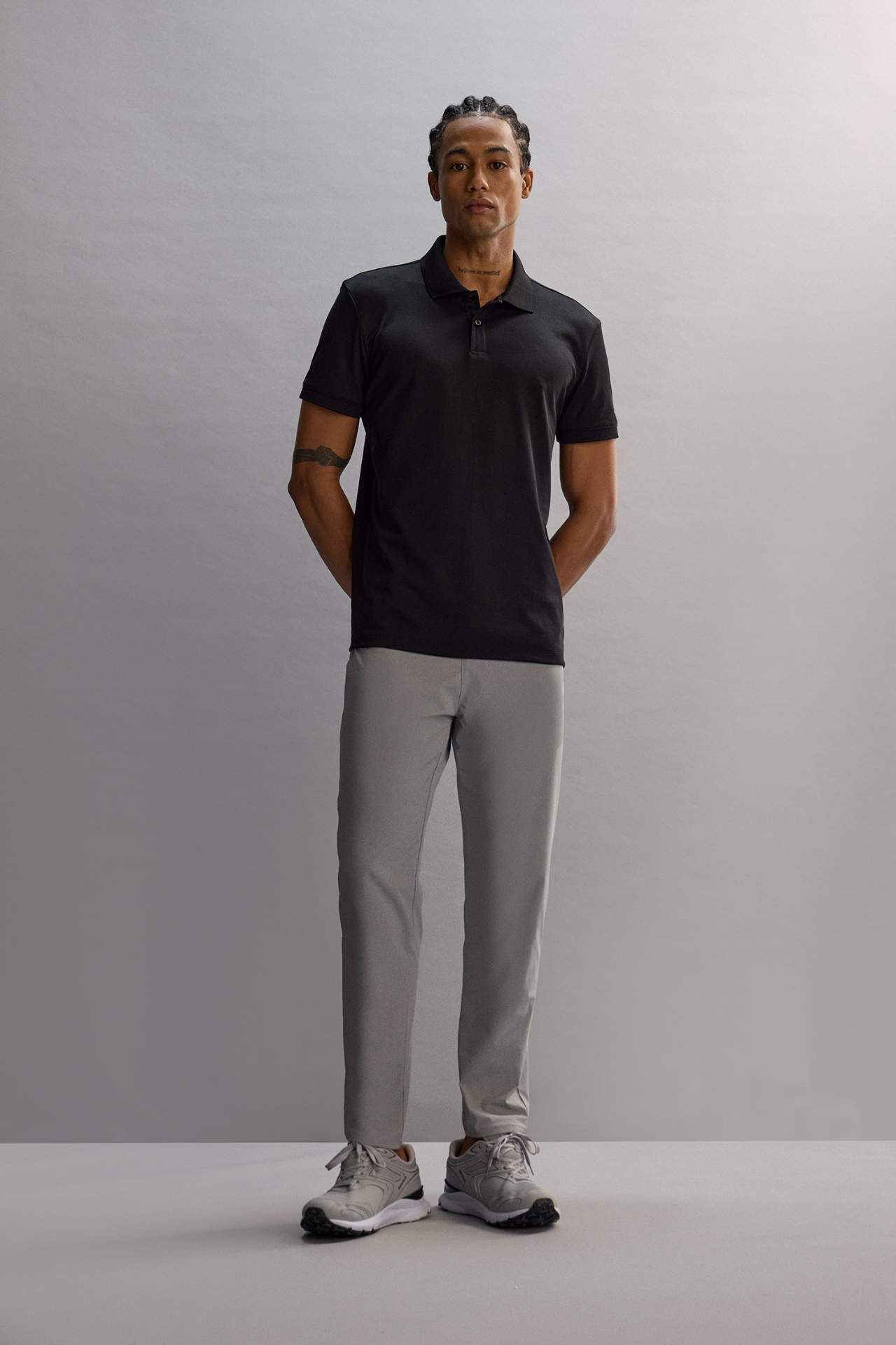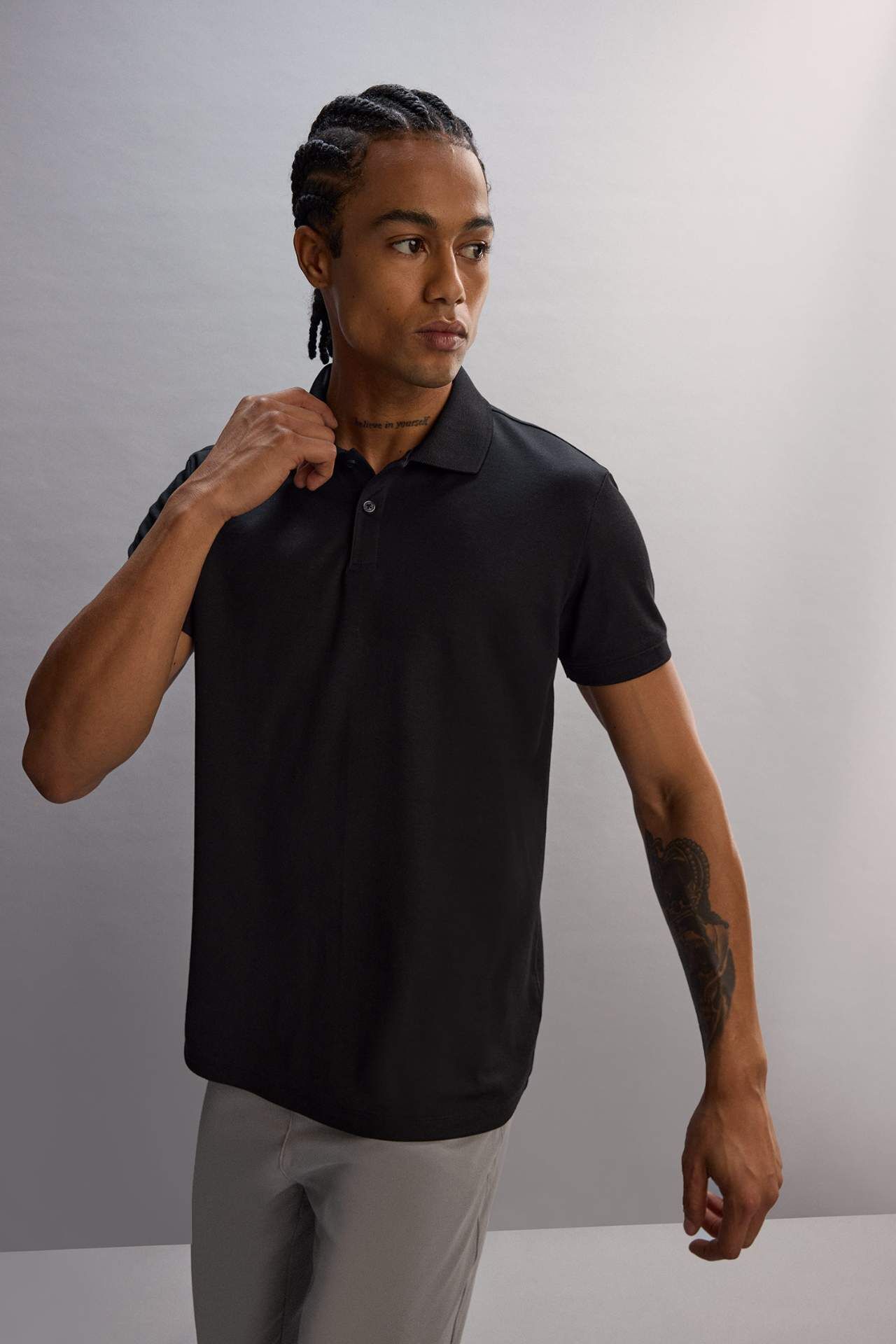 DeFactoFit Slim Fit Dar Kesim Sporcu Kısa Kollu Pike Polo Tişört D9779AX25SPBK81