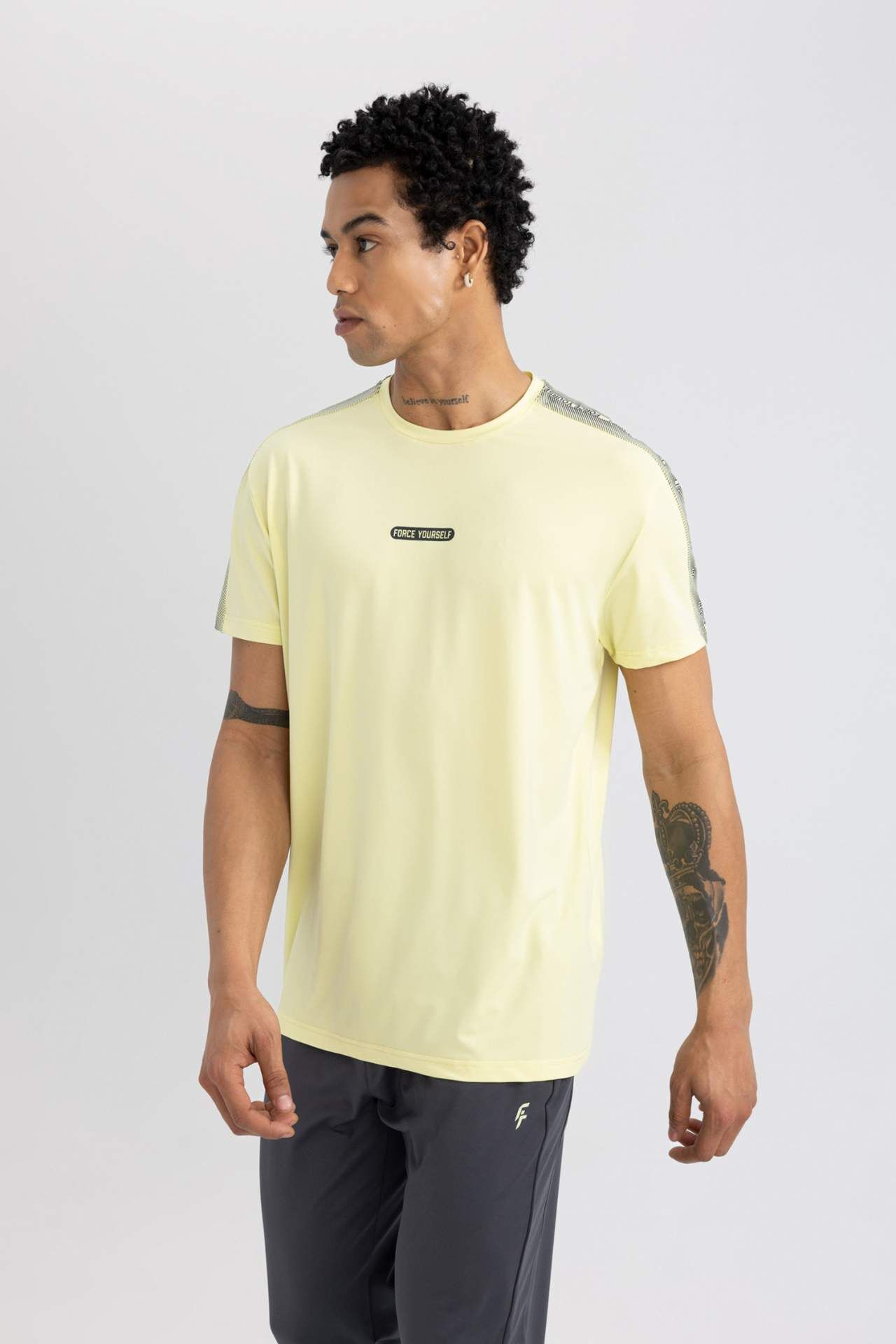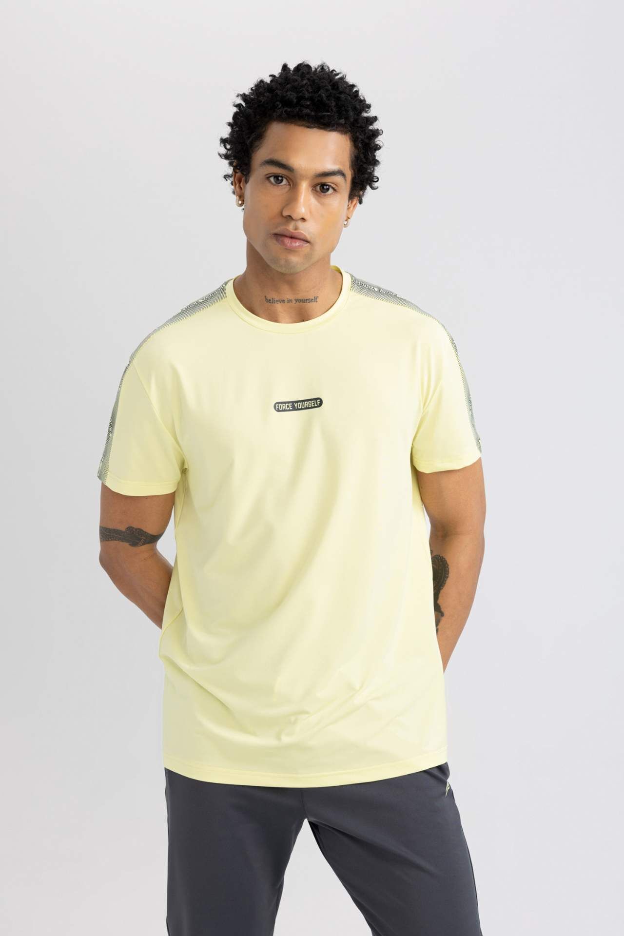 DeFactoFit Standart Fit Bisiklet Yaka Baskılı Ağır Kumaş Kısa Kollu Tişört: Şıklığı ve rahatlığı bir arada sunan bu tişört, günlük şıklığınızı tamamlamak için ideal bir seçim. Yüksek kaliteli kumaşı ve özel baskısıyla tarzınıza modern bir dokunuş katıyor. Her an her yerde şık ve özgün görünmek isteyenler için mükemmel bir seçenek. Elastan 19%,Poliester 81%,Elastan 19%,Poliester 81% Manken Bedeni: Göğüs: 95 Boy: 1,86 Basen: 93 Bel: 74