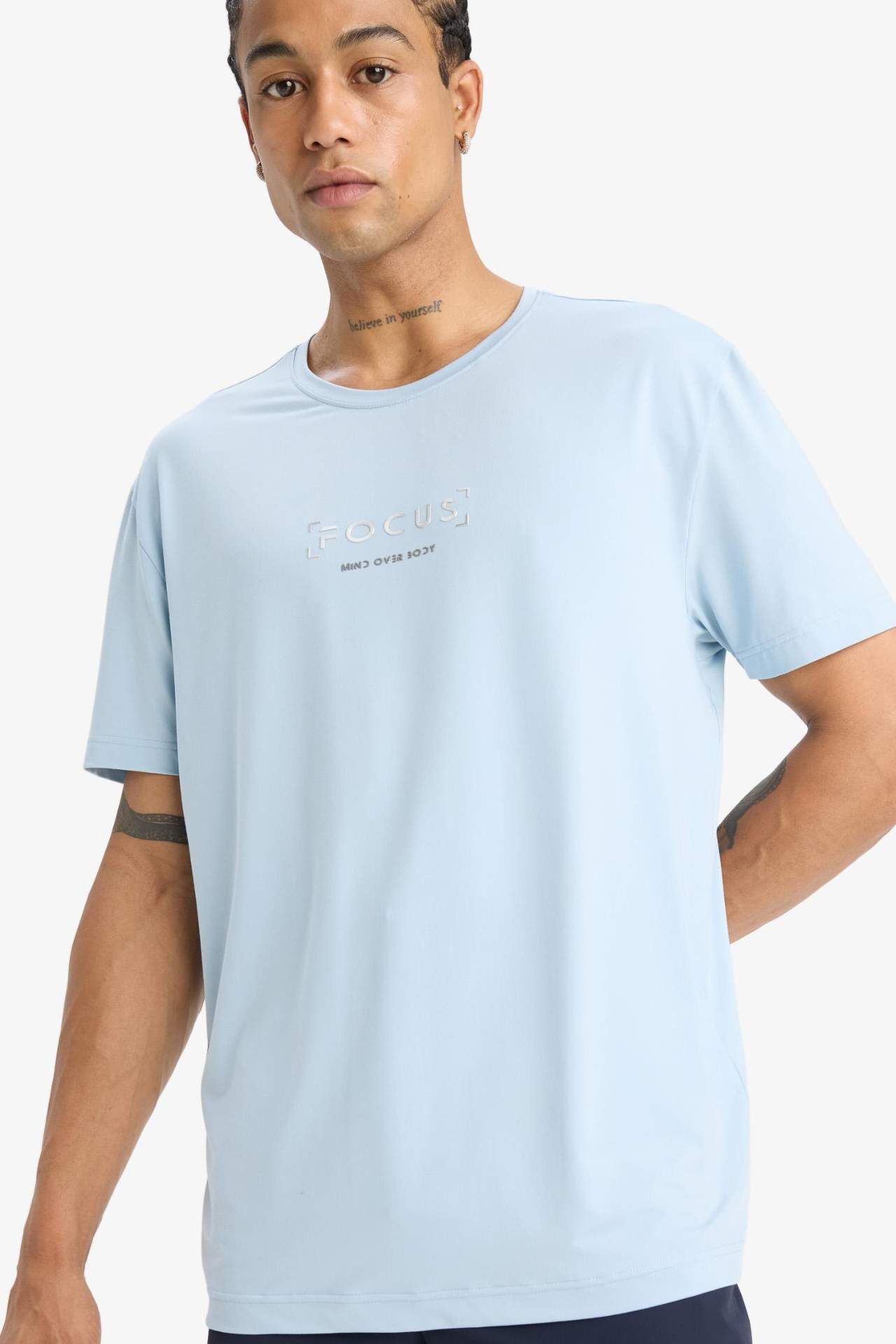 DeFactoFit Standart Fit Bisiklet Yaka Baskılı Sporcu Kısa Kollu Tişört C9268AX25SMBE824