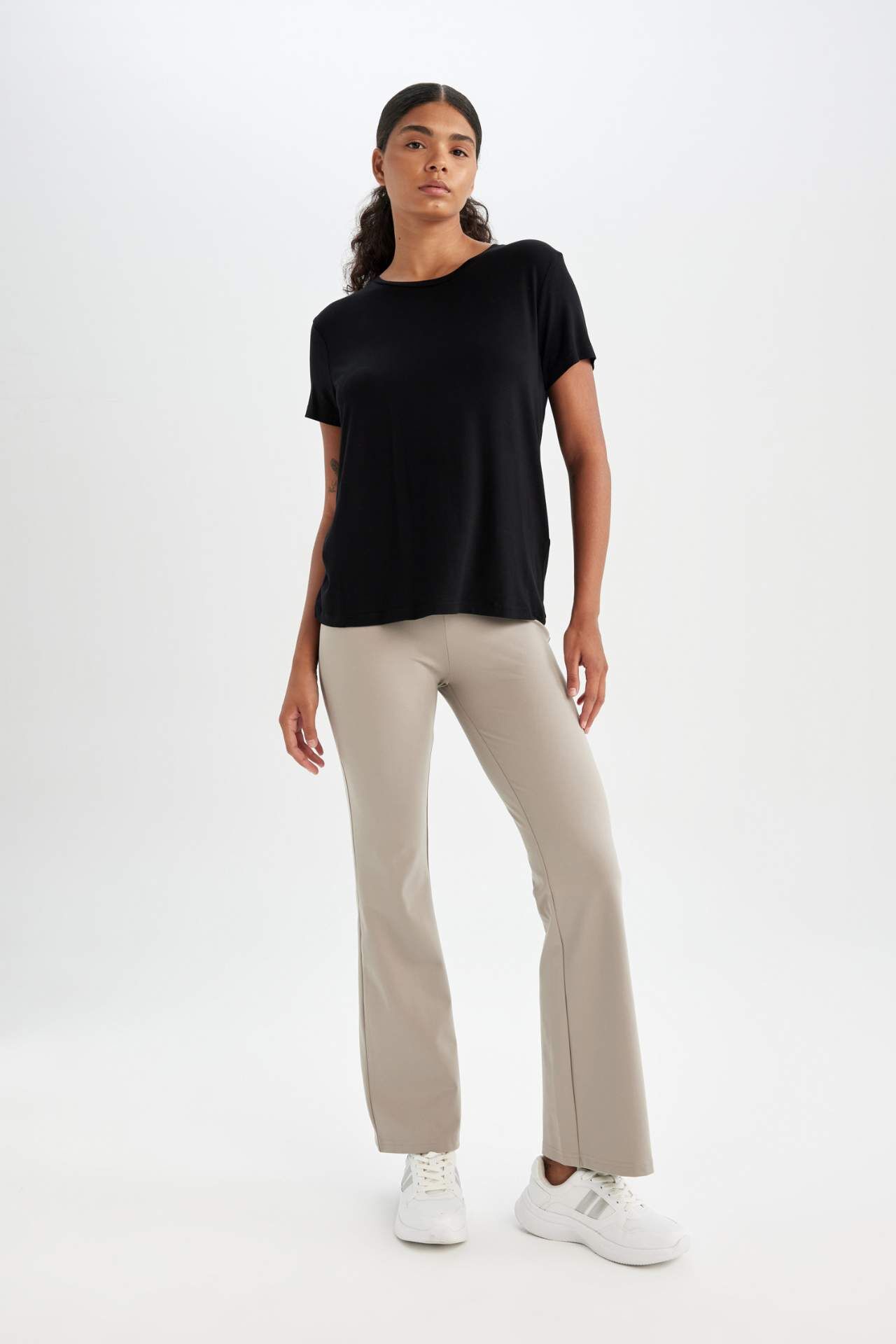 Standart Fit Bisiklet Yaka Sporcu Kısa Kollu Tişört: Şıklığı ve rahatlığı bir arada sunan sporcu tişörtü. Hareket özgürlüğü sağlayan kesimiyle antrenmanlarınıza konfor katar. Şimdi tarzınıza spor bir dokunuş ekleyin! Elastan 4%,Viskoz 96%,Elastan 4%,Viskoz 96% Manken Bedeni: Göğüs: 80 Boy: 1,77 Basen: 90 Bel: 63