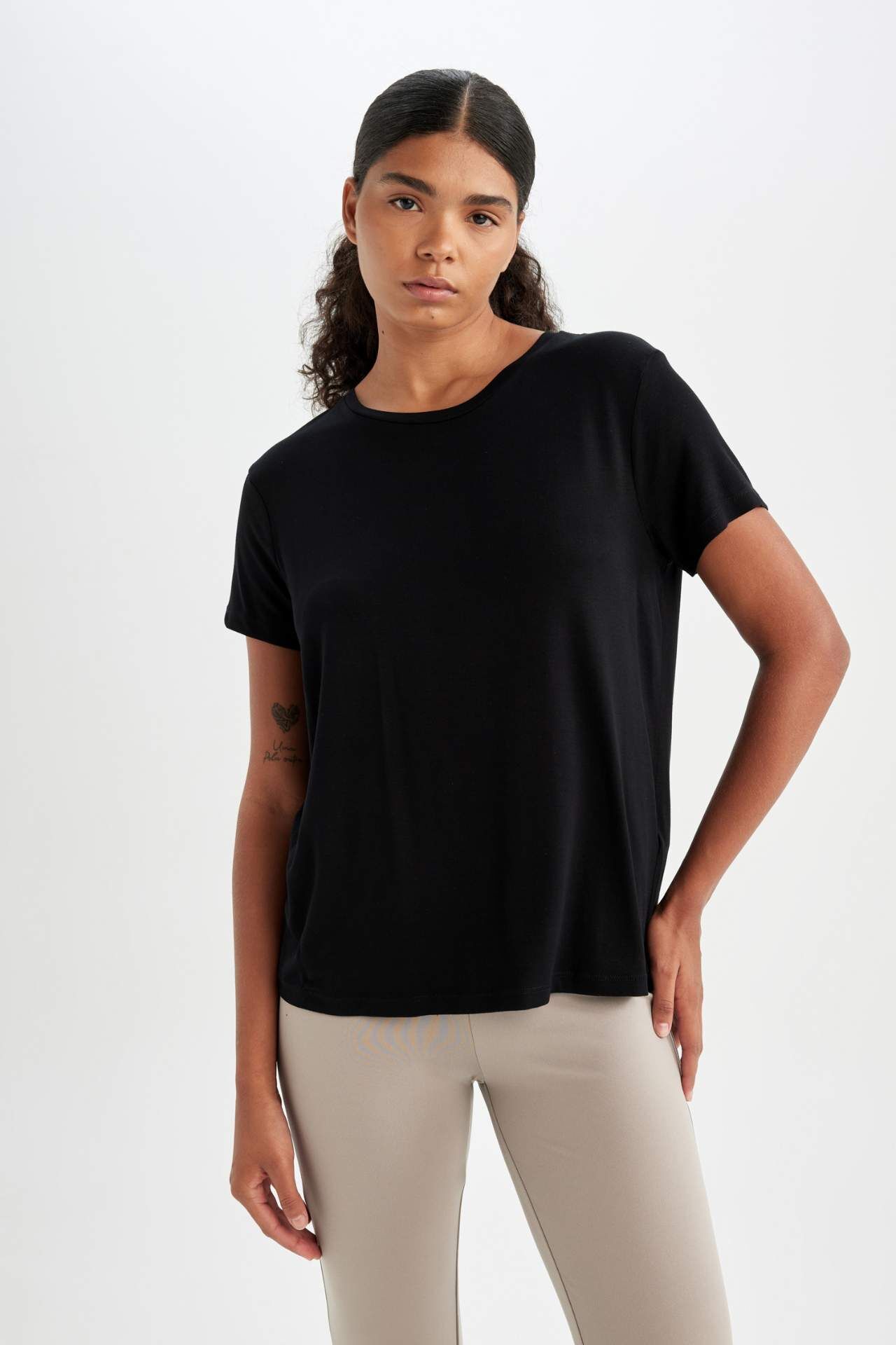 DeFactoFit Standart Fit Bisiklet Yaka Sporcu Kısa Kollu Tişört D1904AX24AUBK81