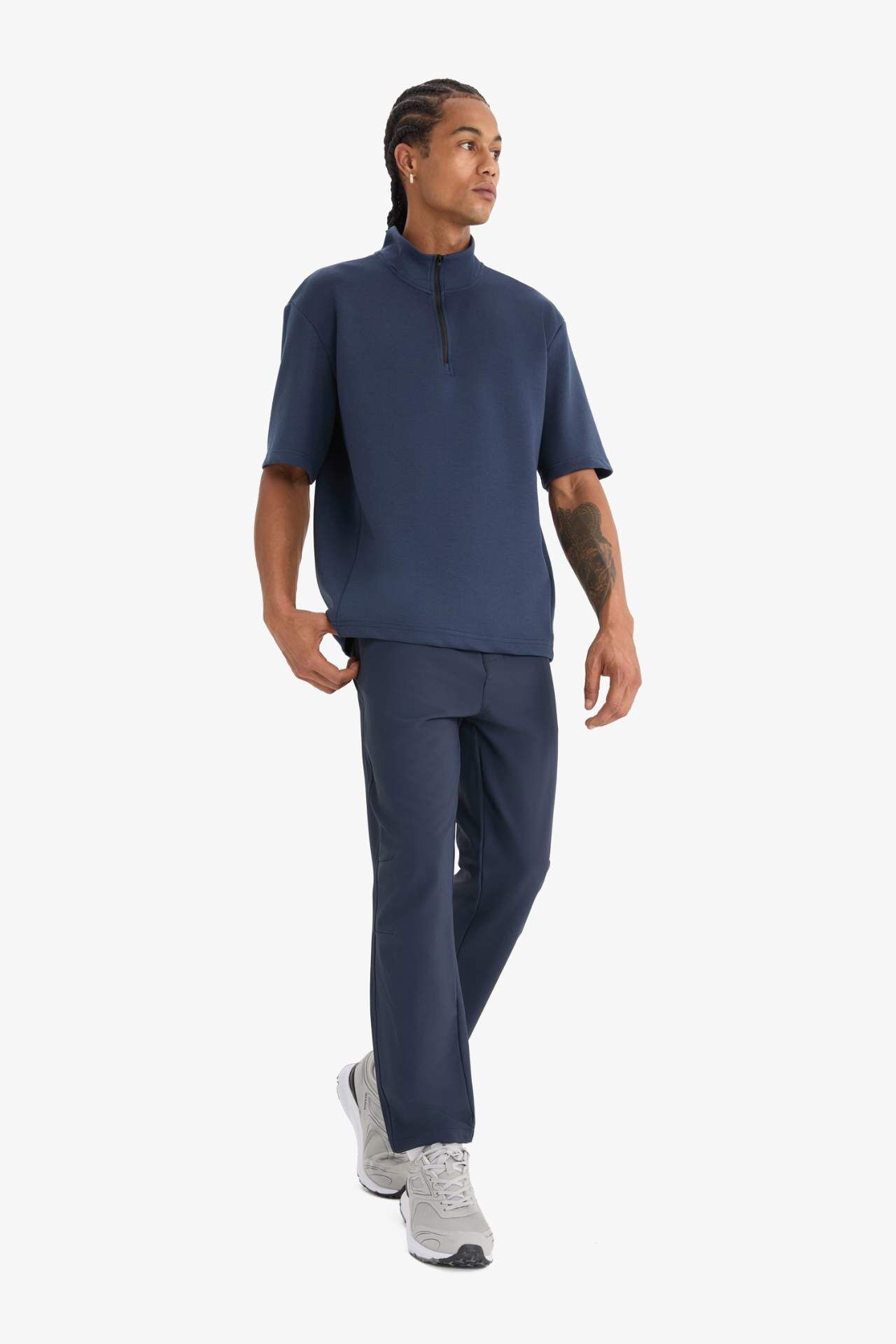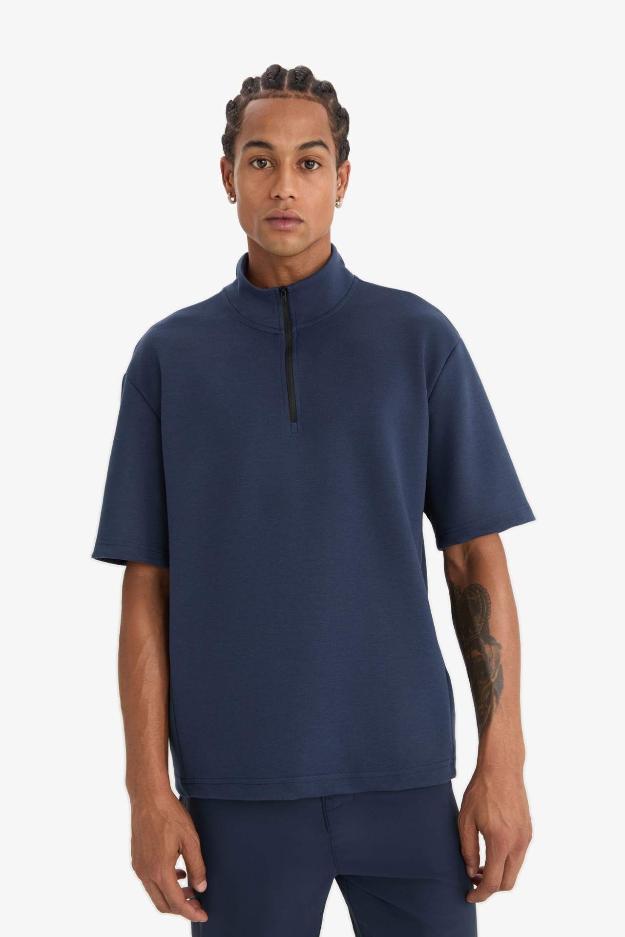 DeFactoFit Standart Fit Dik Yaka Fermuarlı Sporcu Kısa Kollu Skuba Dalgıç Kumaş Tişört E3962AX25SPNV201