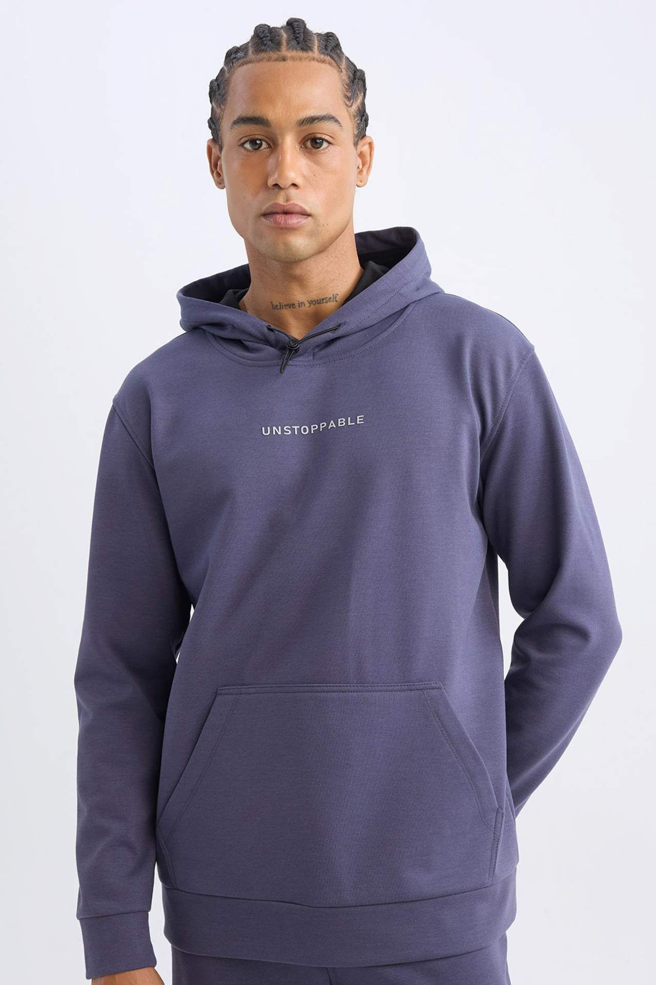 DeFacto DeFactoFit Standart Fit Kapüşonlu Arma Baskılı Baskılı Skuba Dalgıç Kumaş Sweatshirt D1893AX24AUPR493
