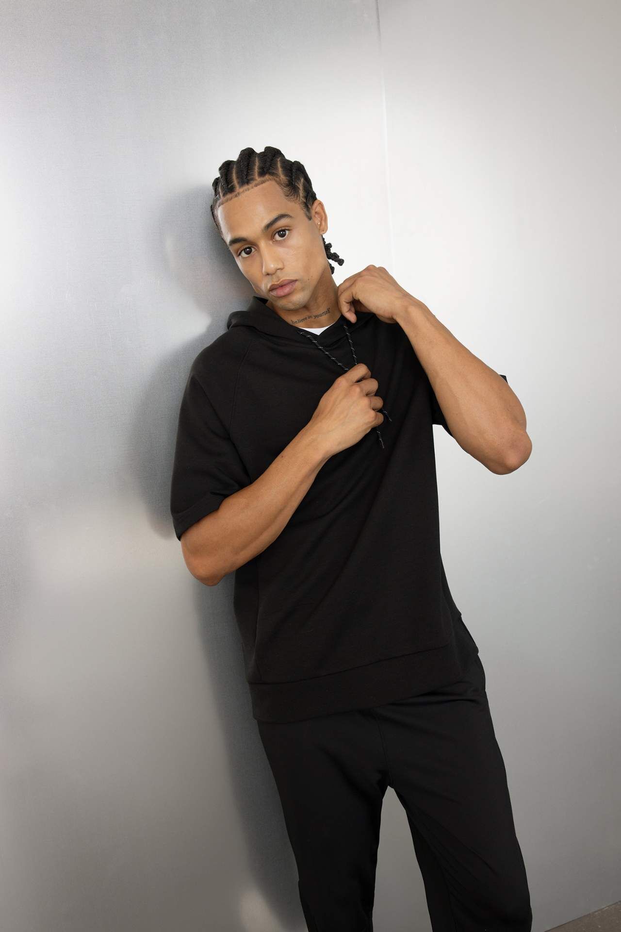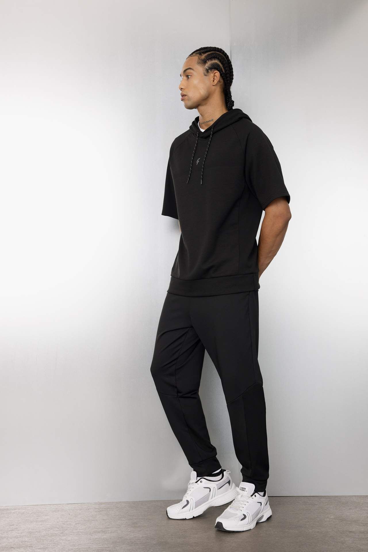 DeFactoFit Standart Fit Kapüşonlu Sporcu Skuba Dalgıç Kumaş Tişört C9496AX24AUBK81