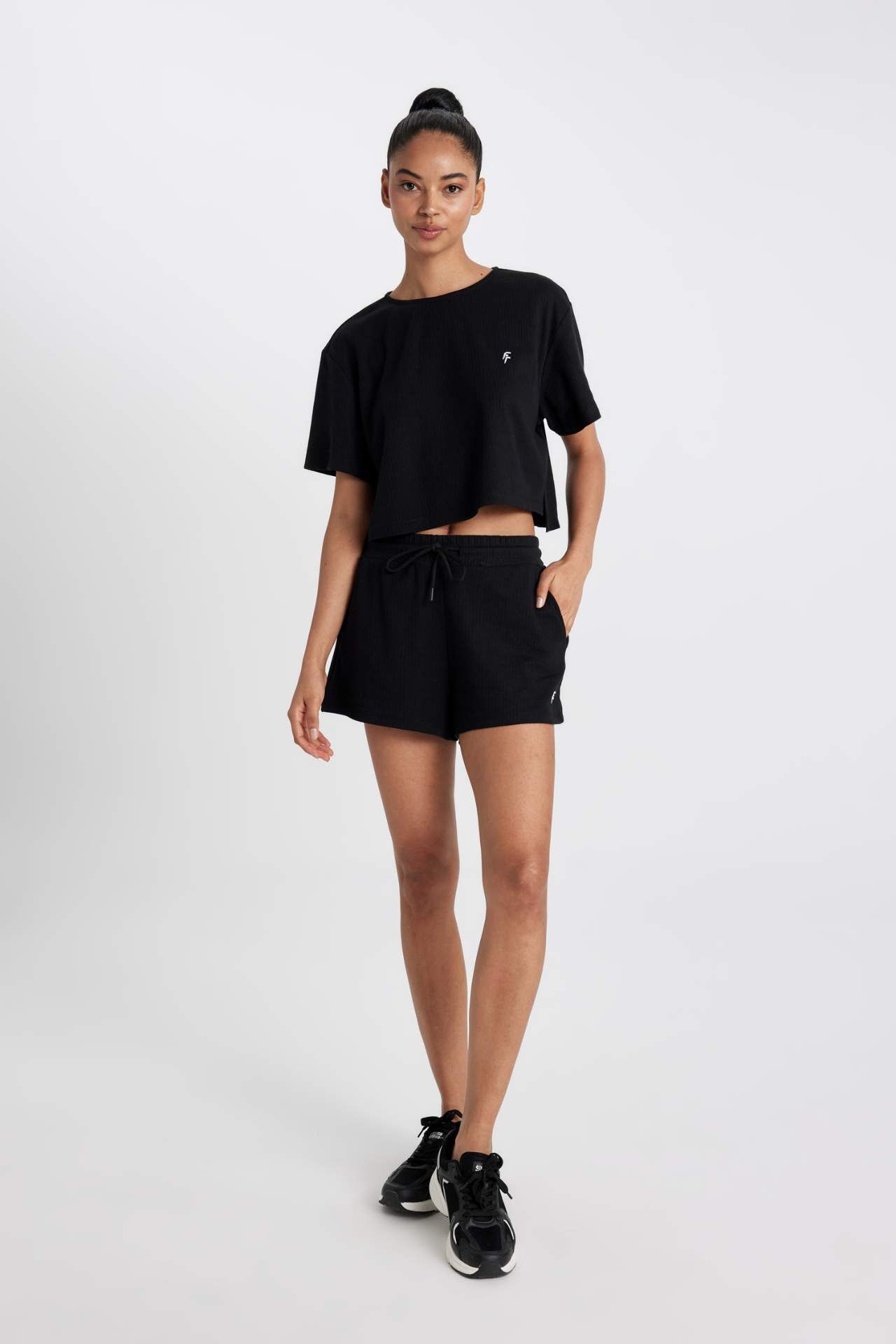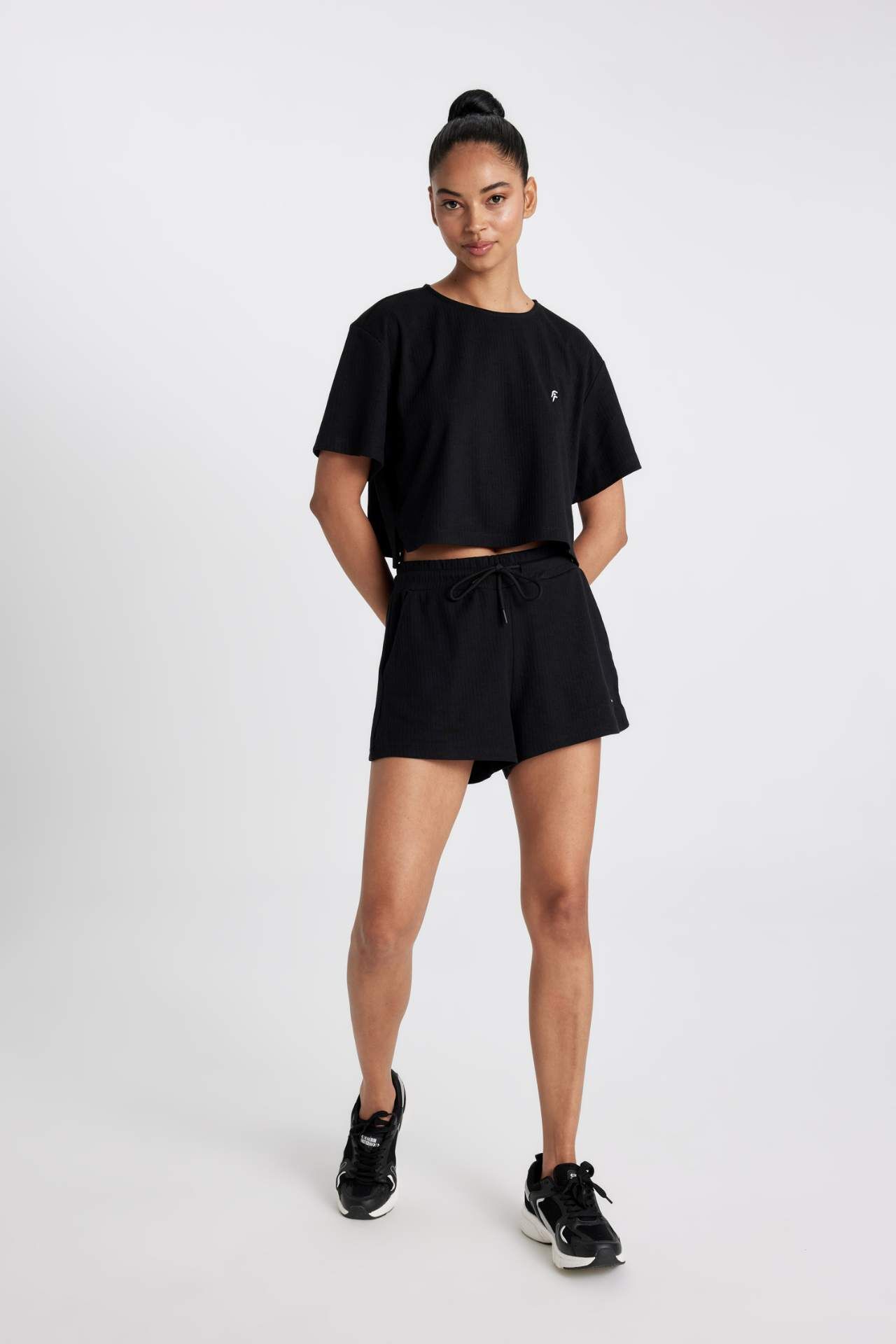 DeFacto DeFactoFit Standart Fit Sporcu Düz Paça Ribana Şort A9919AX24SMBK81