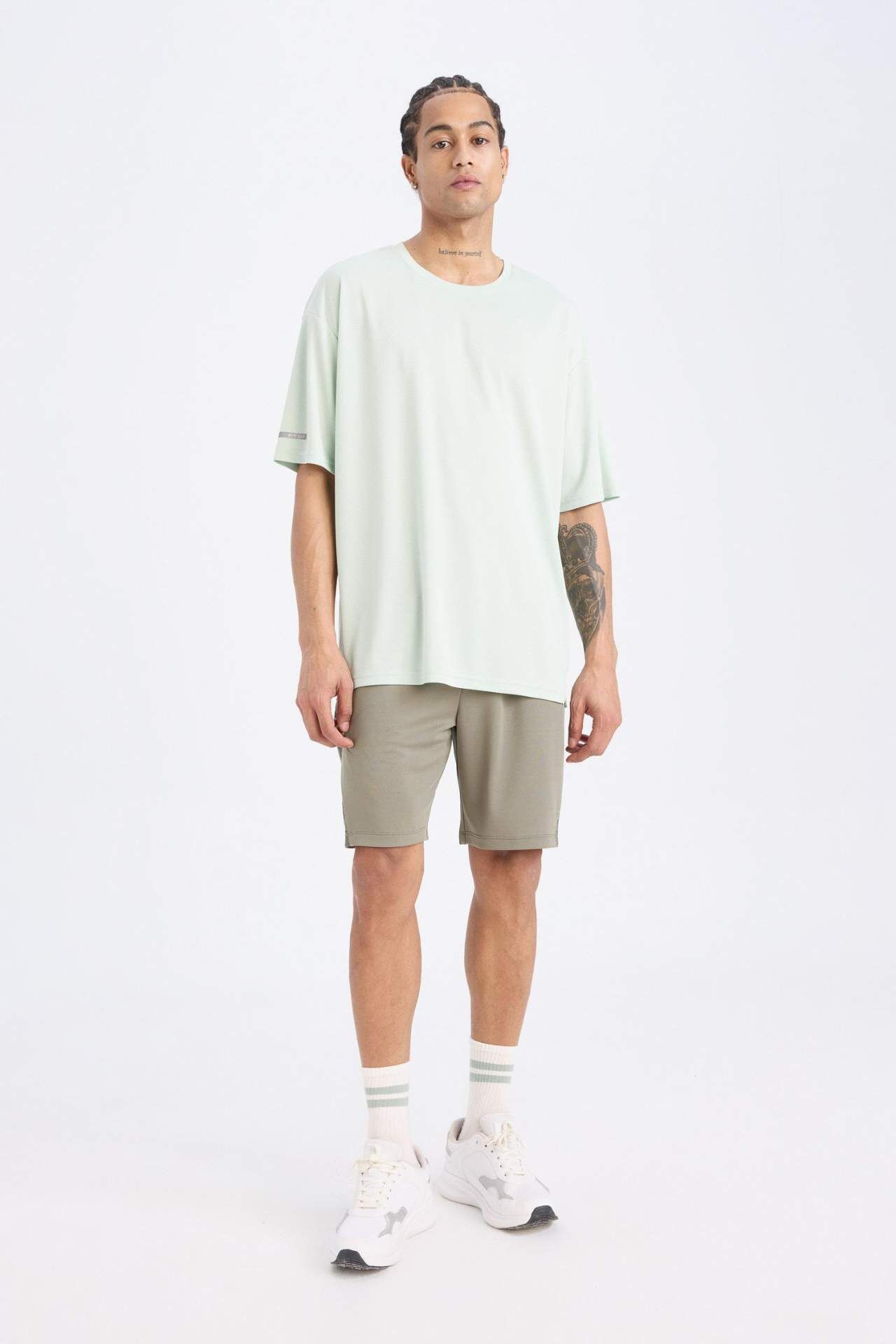 DeFactoFit Standart Fit Sporcu Kısa Paça Şort, yazın sıcak günlerinde rahatlık ve hareket özgürlüğü sunuyor. Standart fit kesimi ile vücuda otururken, kısa paça tasarımı şıklığınızı tamamlar. Spor yaparken ya da günlük kombinlerde rahatça tercih edebileceğiniz pratik bir seçenek! Poliester 100%,Poliester 100%,Poliester 100% Manken Bedeni: Göğüs: 98 Boy: 1,87 Basen: 97 Bel: 78