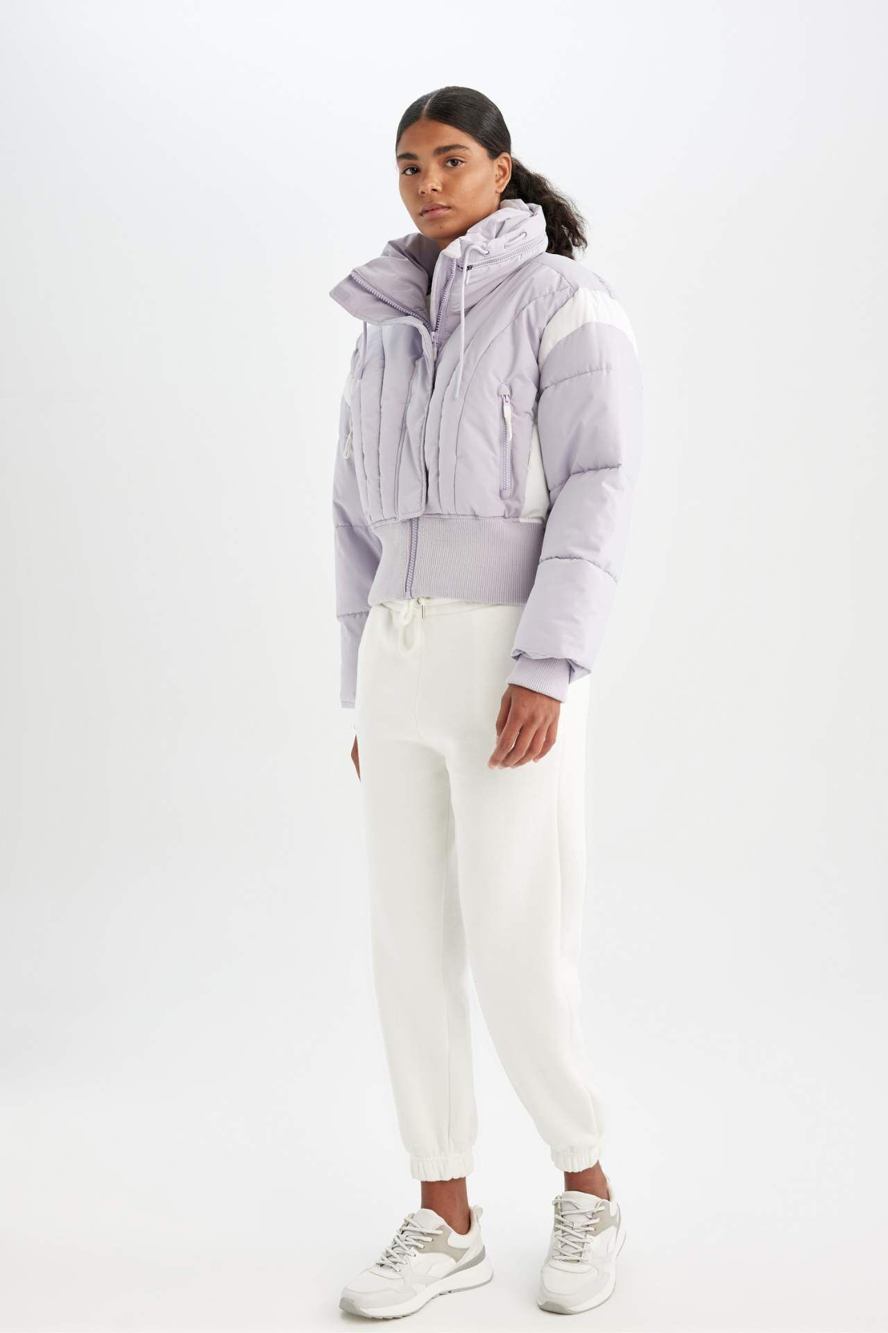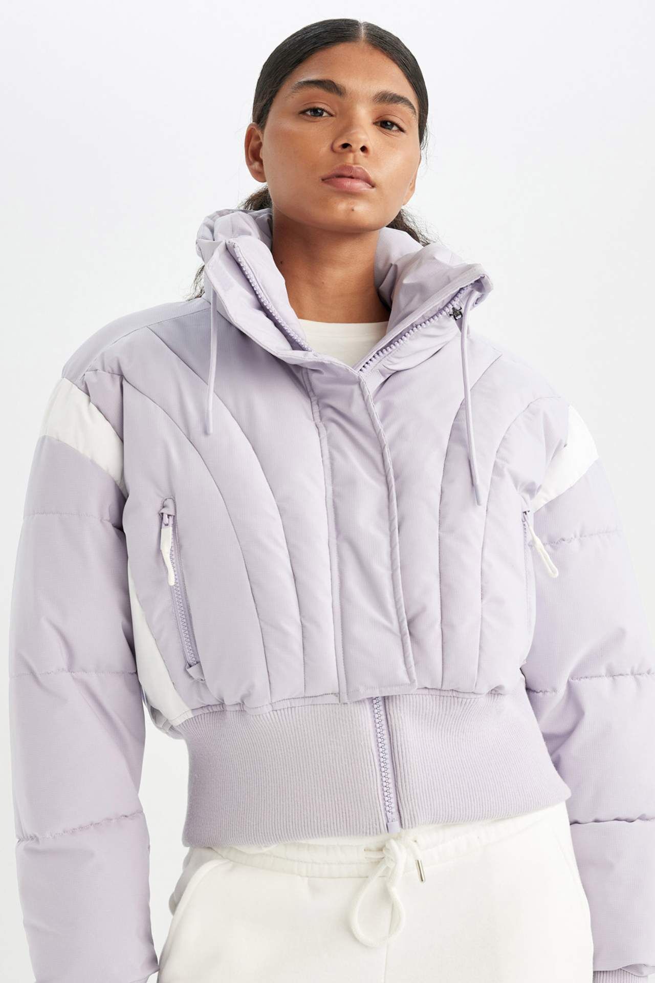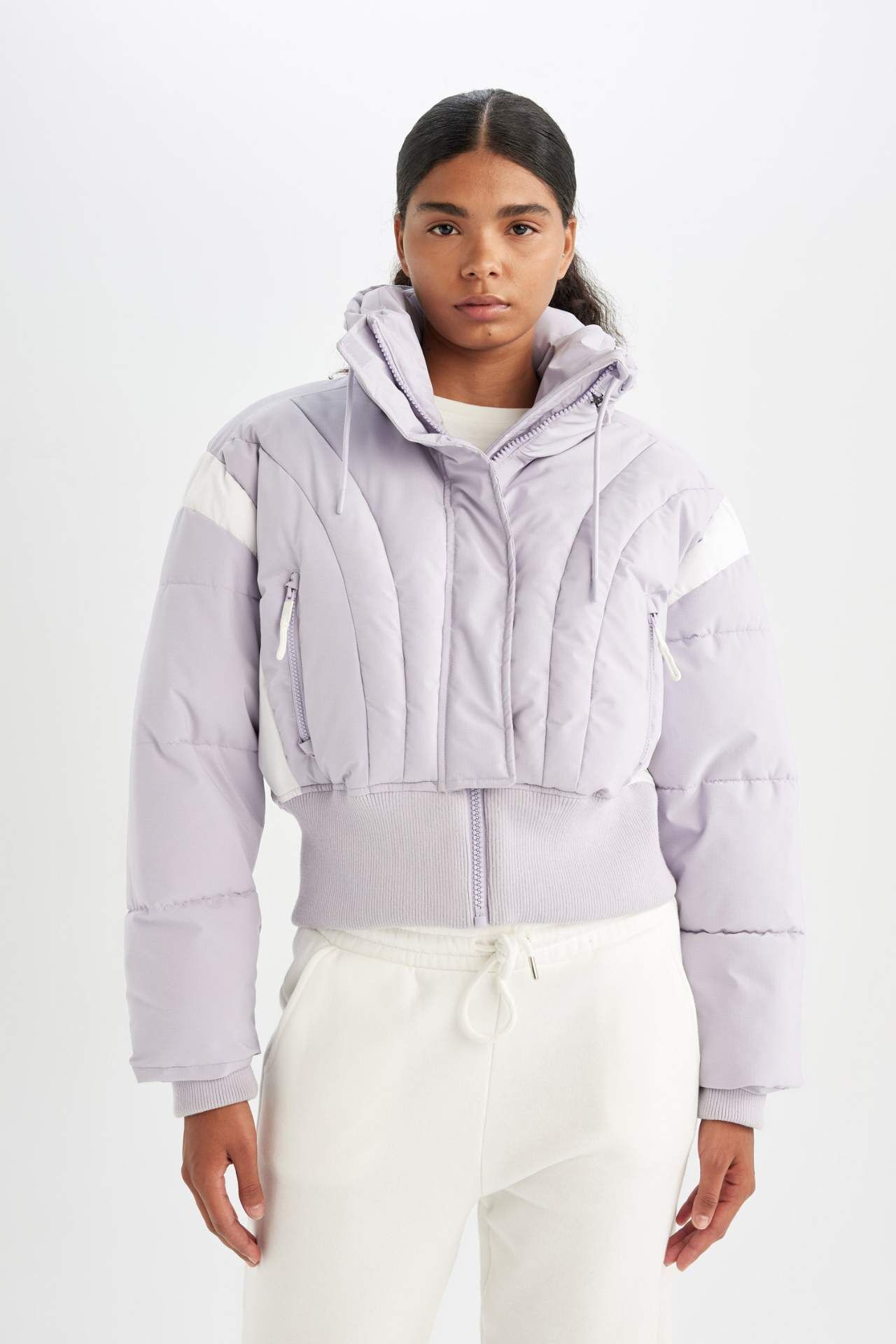 DeFacto DeFactoFit Su İtici Crop Kapüşonlu Su Geçirmez Fermuarlı Cepli Şişme Mont