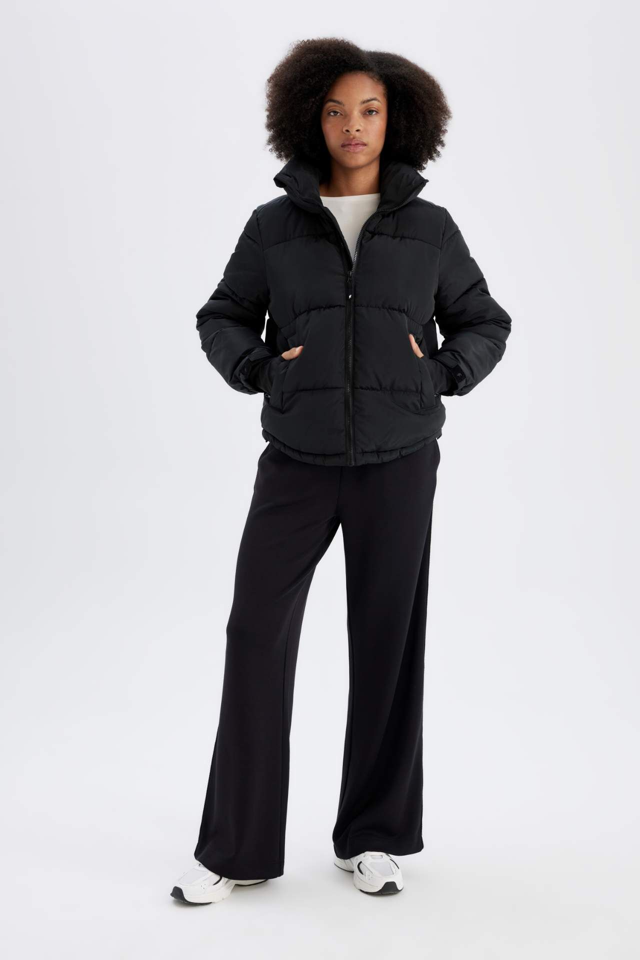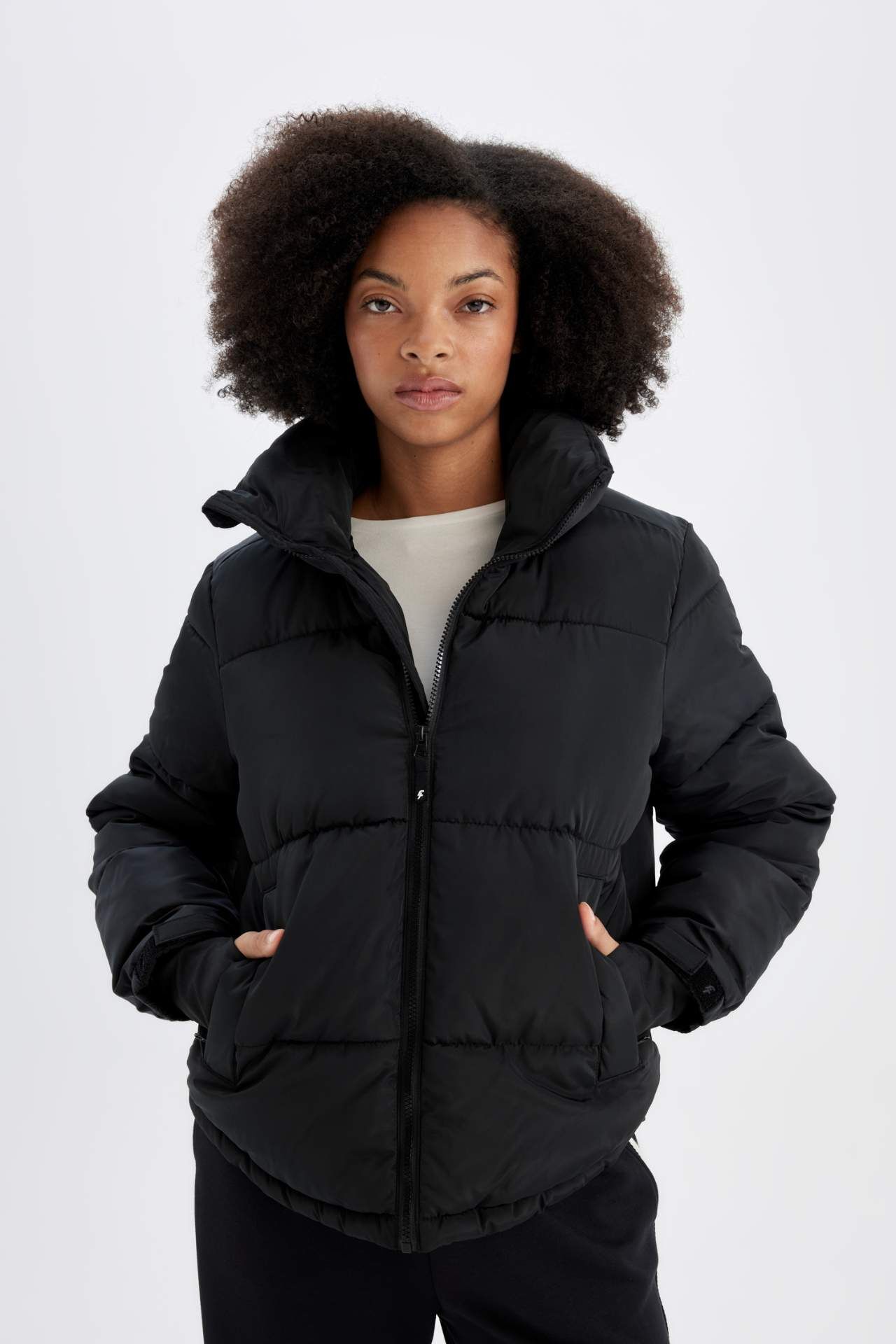 DeFacto DeFactoFit Su İtici Dik Yaka Fermuarlı Cepli Şişme Mont Z1438AZ24WNBK81