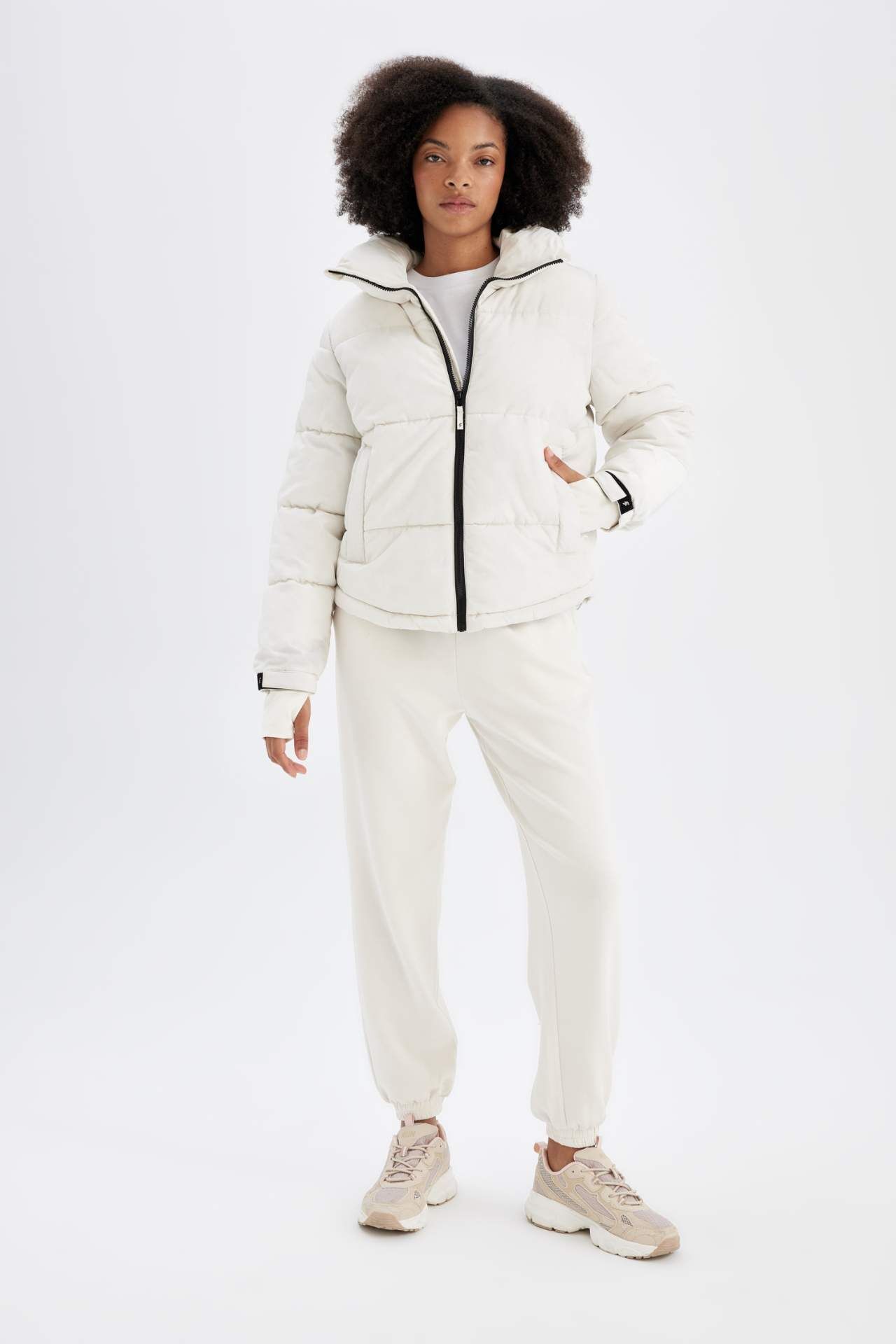 DeFacto DeFactoFit Su İtici Dik Yaka Fermuarlı Cepli Şişme Mont Z1438AZ24WNER105