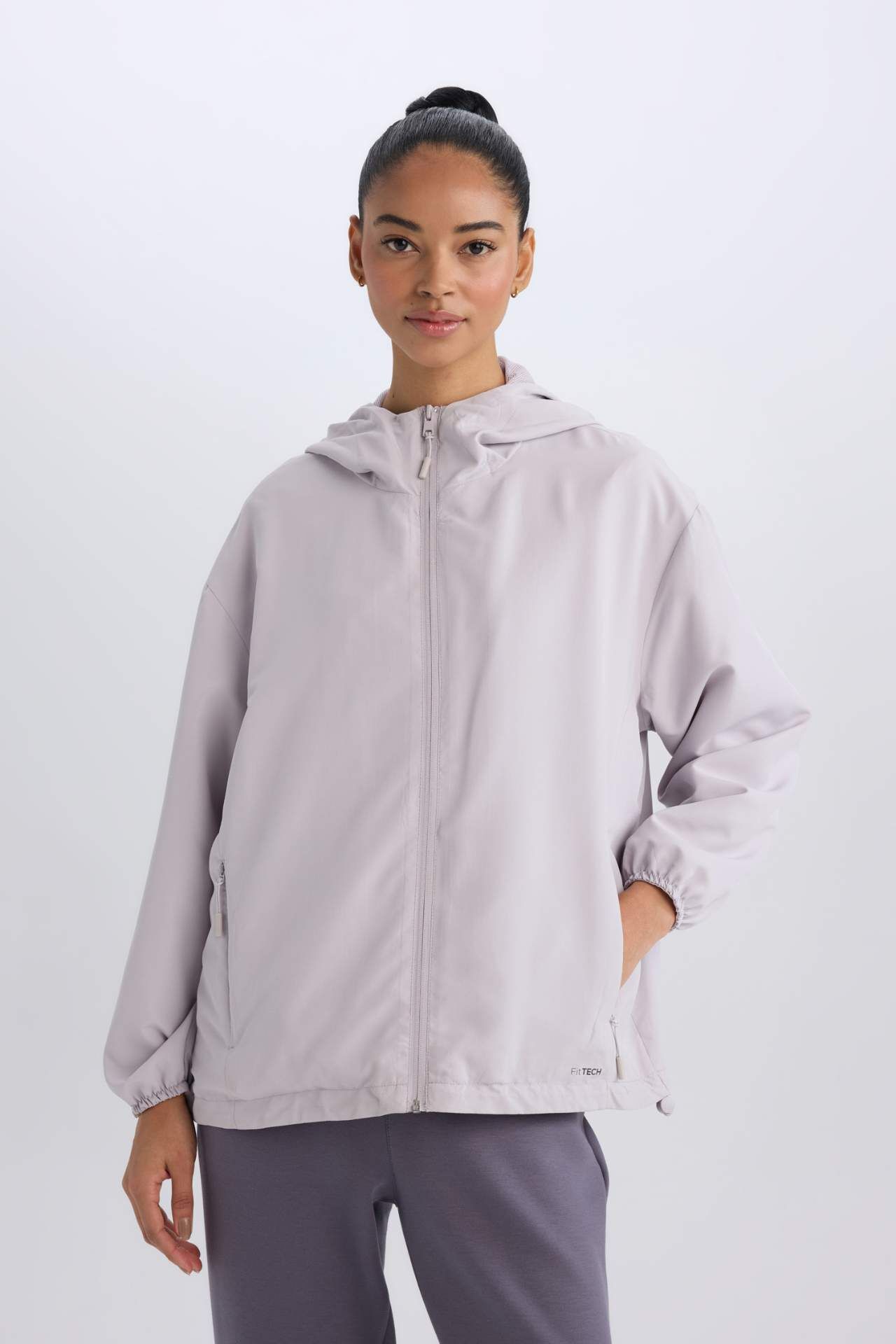 DeFacto DeFactoFit Su İtici Kapüşonlu Fermuarlı Cepli Ayarlanabilir Lastikli Mevsimlik Baharlık Ceket Mont