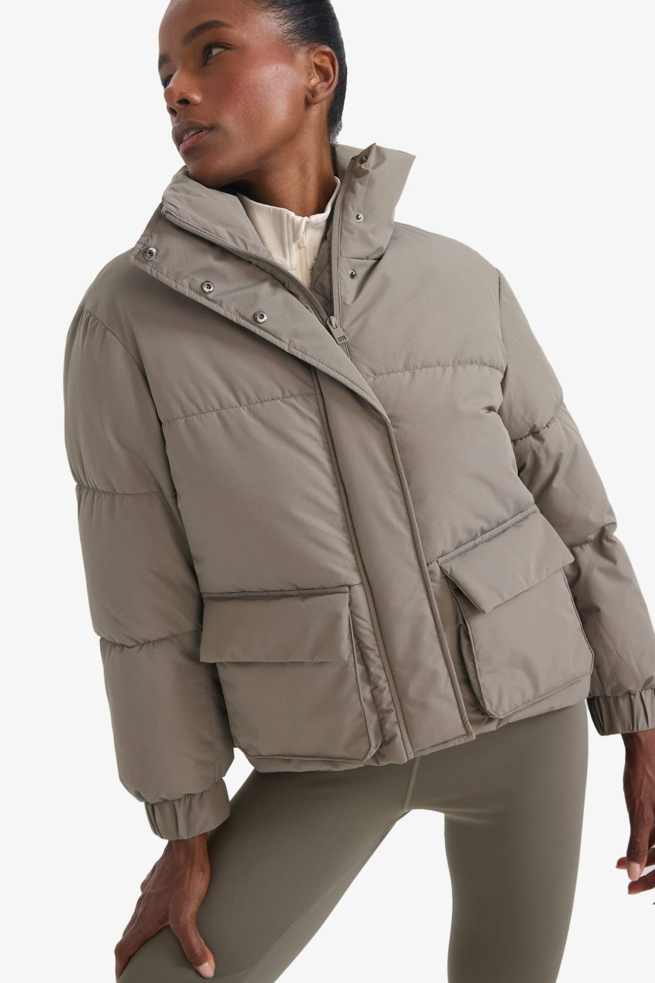 Defactofit Su İtici Oversize Fit Geniş Kalıp Dik Yaka Fermuarlı Çıtçıtlı Cepli Şişme Mont