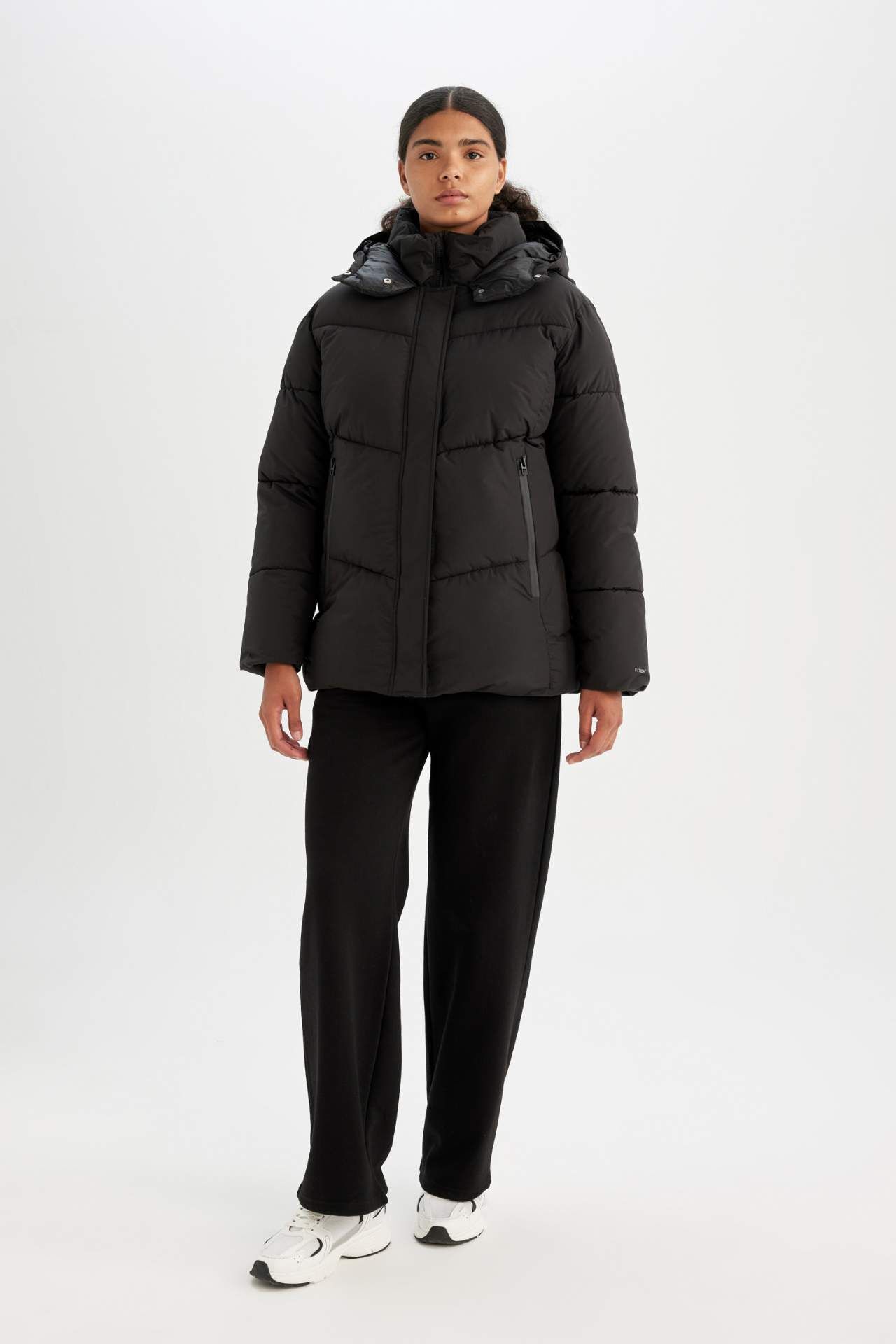 DeFacto DeFactoFit Su İtici Regular Fit Kapüşonlu Polar Astarlı Fermuarlı Su Geçirmez Mont