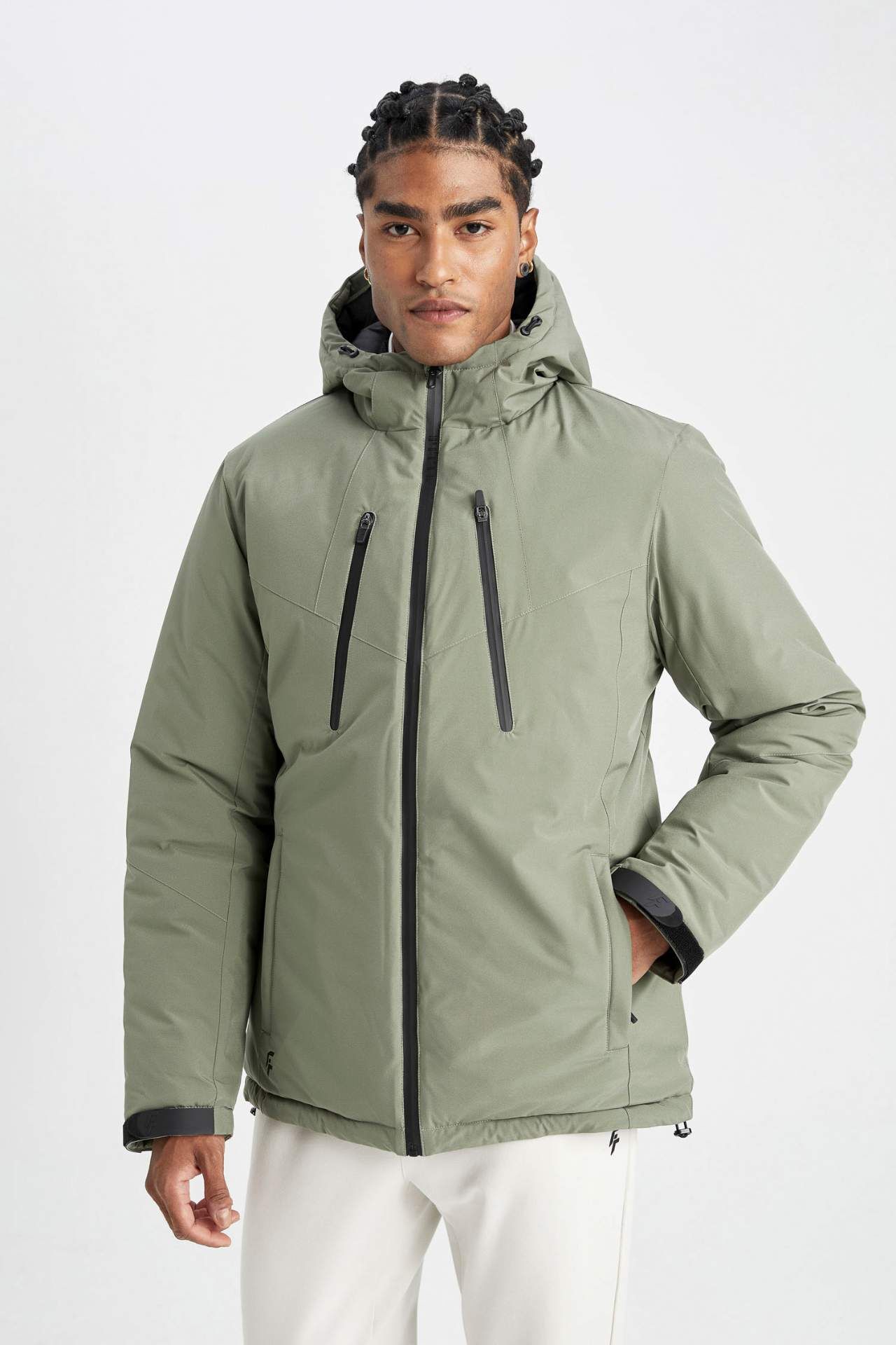 DeFacto DeFactoFit Su İtici Slim Fit Dar Kesim Kapüşonlu Fermuarlı Su Geçirmez Mont A2125AX24WNKH109