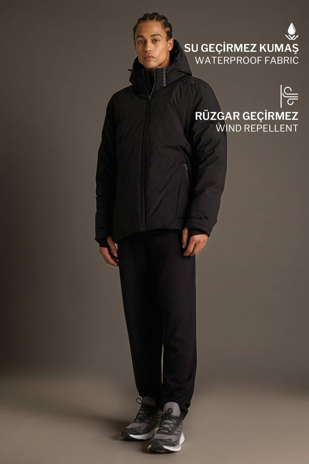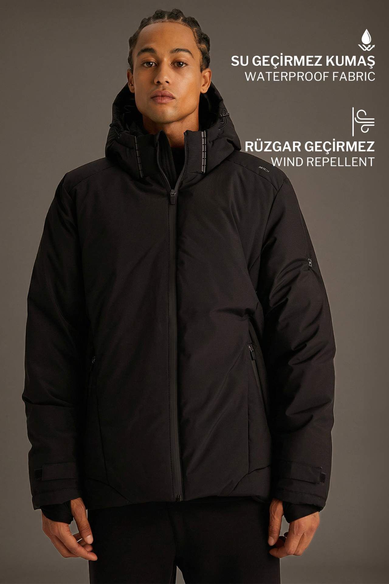 Defactofit Usb Isıtıcılı Su İtici Rüzgar Geçirmez Kapüşonlu Fermuarlı Kışlık Kayak Montu