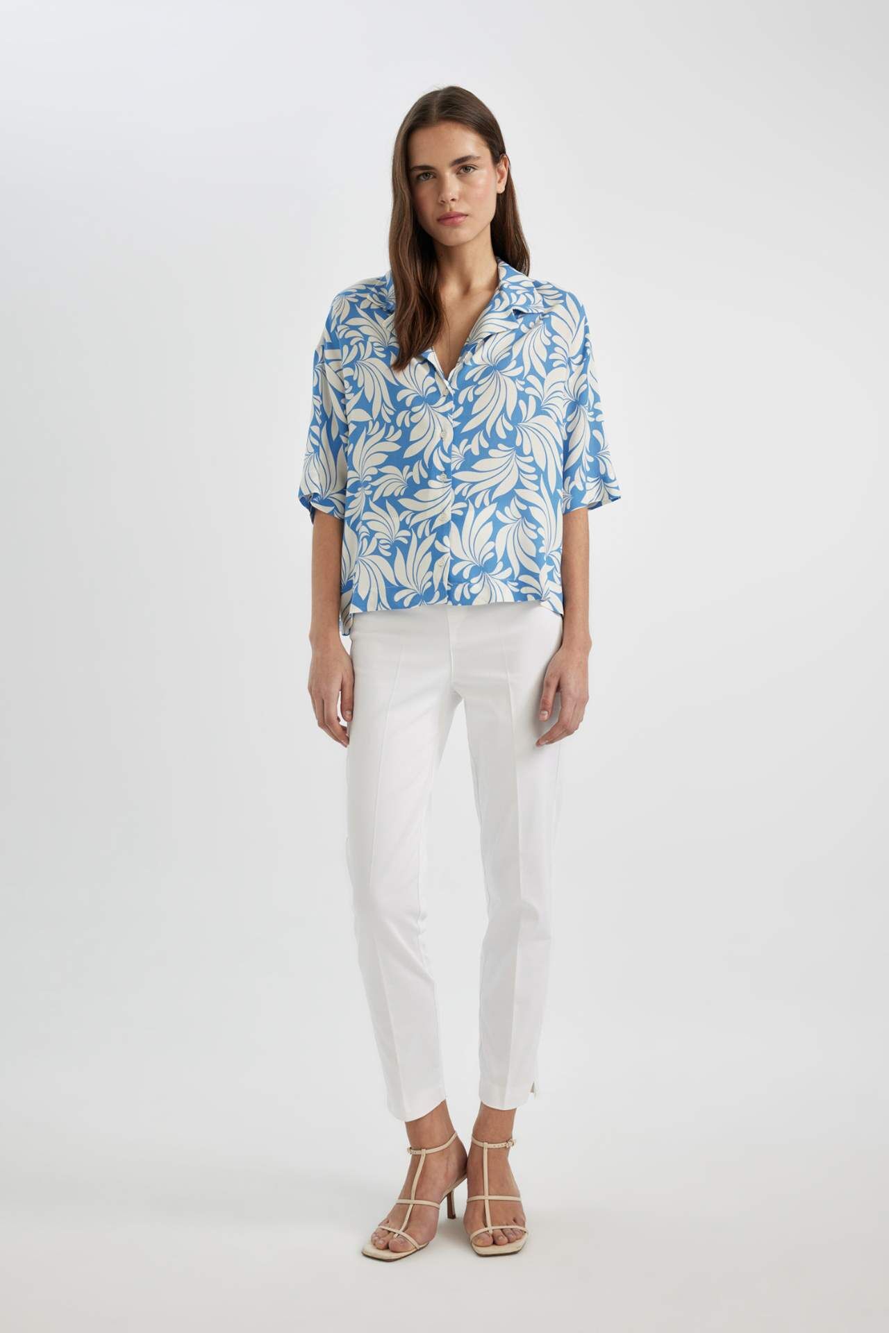 DeFacto Desenli Ceket Yaka Kısa Kollu Gömlek