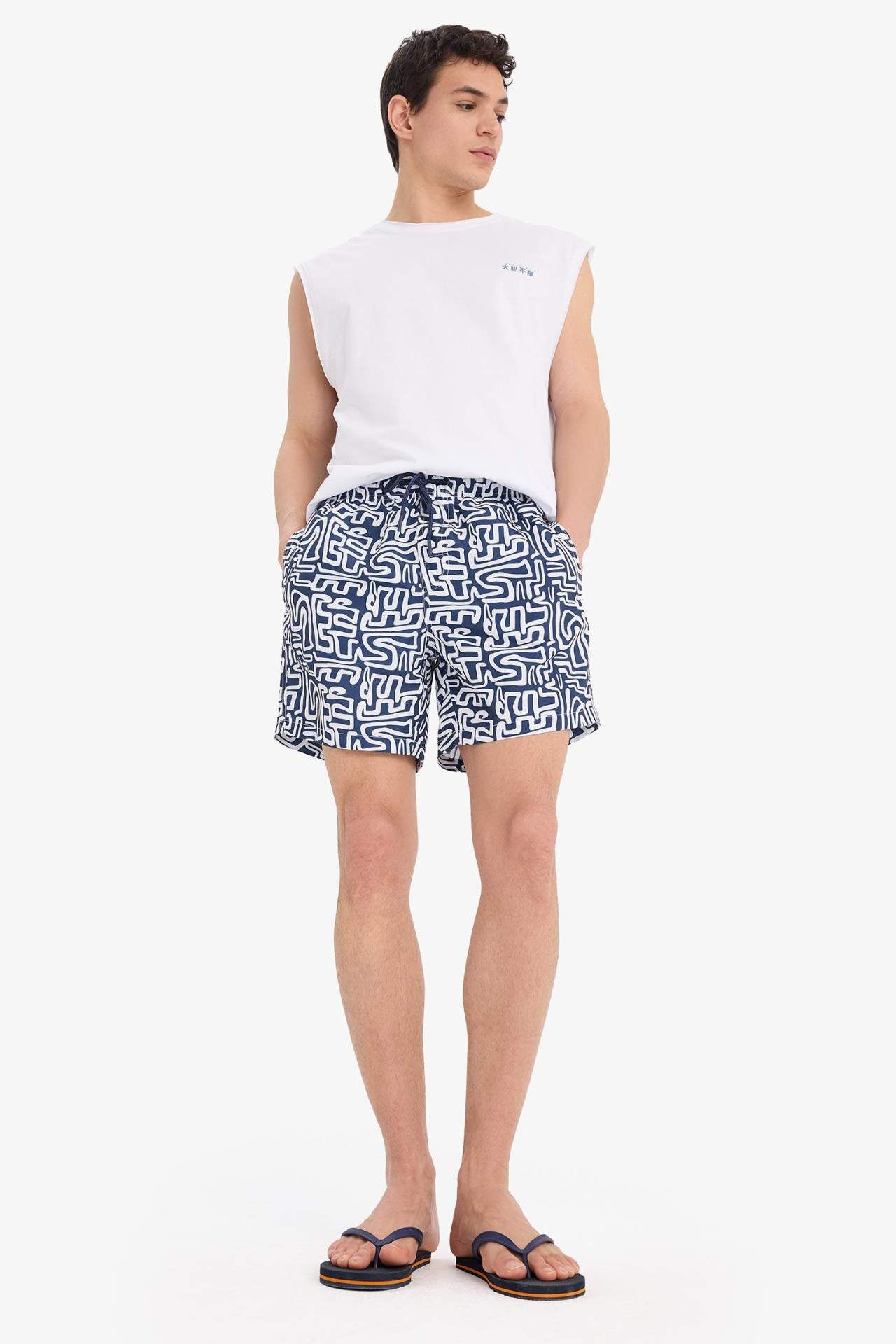 DeFacto Desenli File Astarlı Kısa Boy Deniz Şortu A7376AX25HSNV256