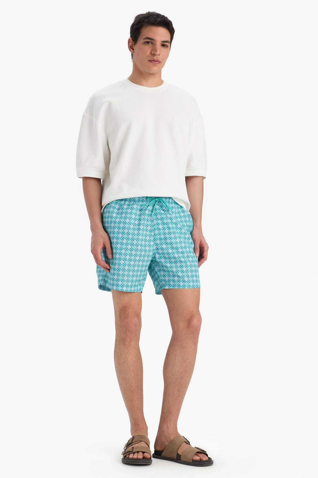 DeFacto Desenli File Astarlı Kısa Boy Deniz Şortu E0976AX25HSGN1101