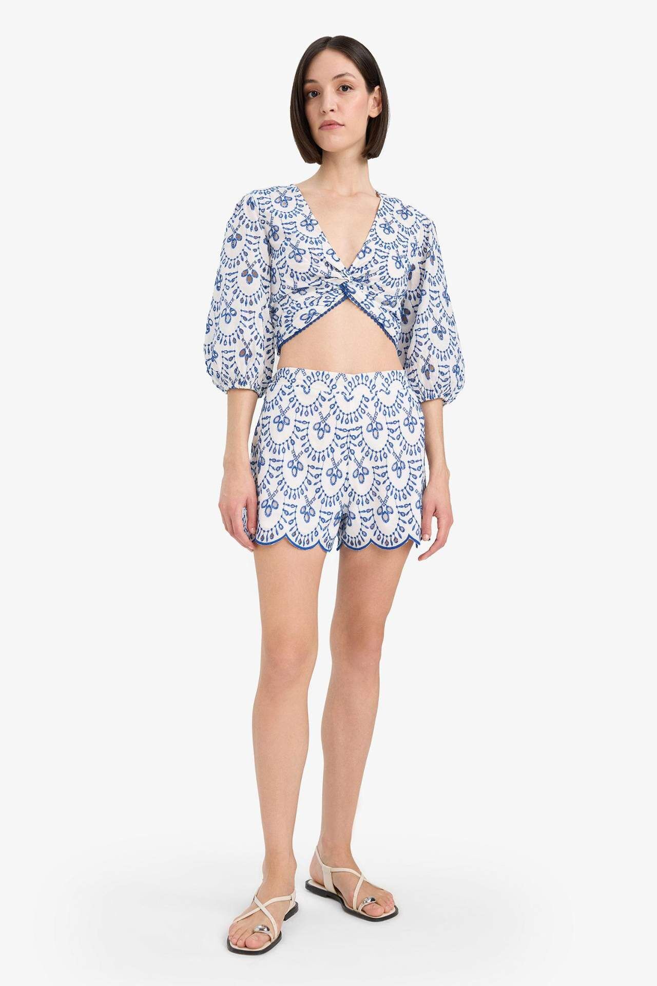 Desenli Nakışlı Brode Plaj Şortu, hafif kumaşı ve zarif nakış detaylarıyla yaz stilinize ferah ve şık bir hava katar. Elastik beli sayesinde konforlu bir kullanım sunar, plaj kombinlerinin vazgeçilmez parçasıdır. Pamuk 100%,Pamuk 100%,Pamuk 100%,Pamuk 100%,Pamuk 100%,Pamuk 100%,Pamuk 100%,Pamuk 100%,Pamuk 100%,Pamuk 100%,Pamuk 100%,Pamuk 100% Manken Bedeni: Göğüs: 83 Boy: 1,81 Basen: 90 Bel: 58