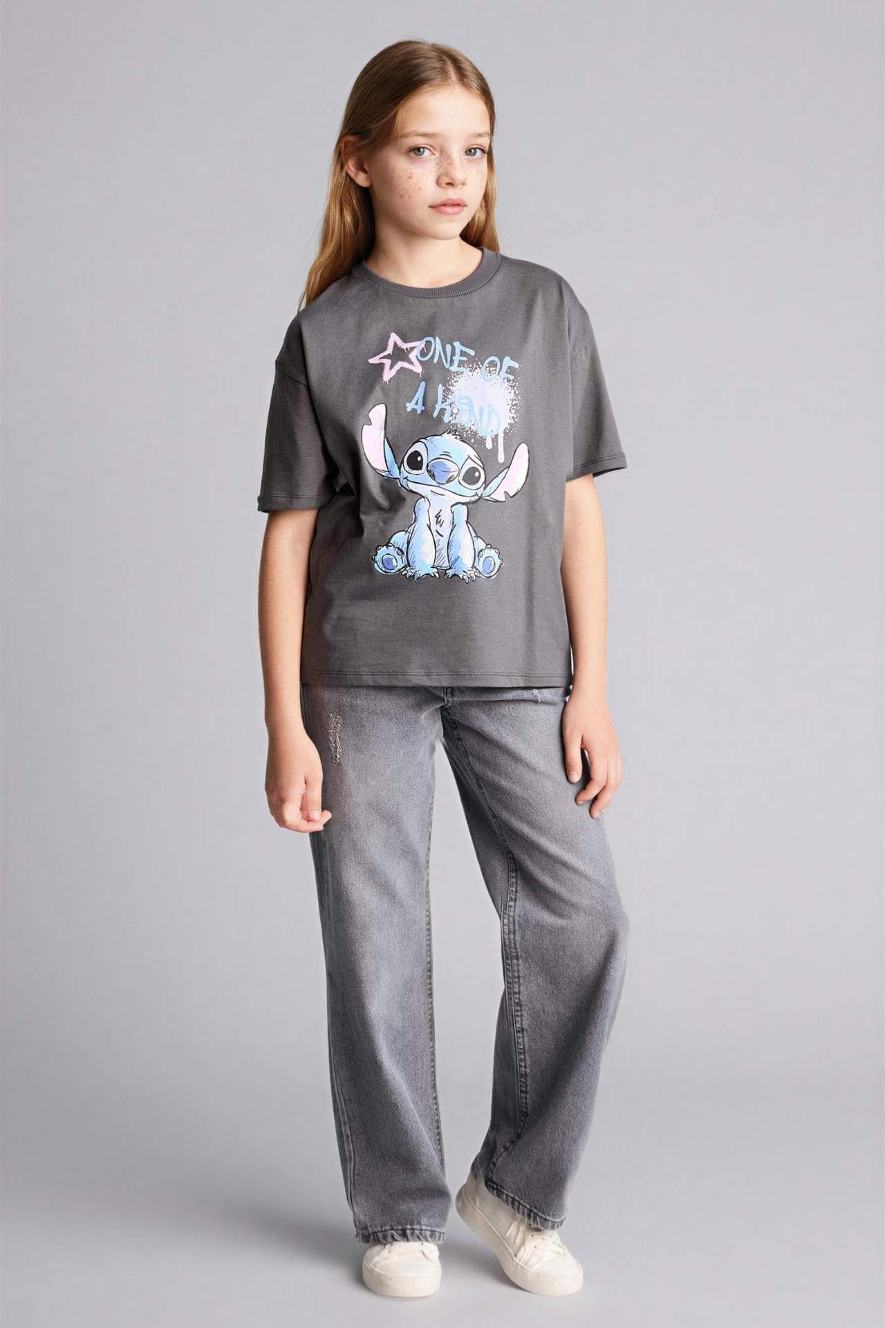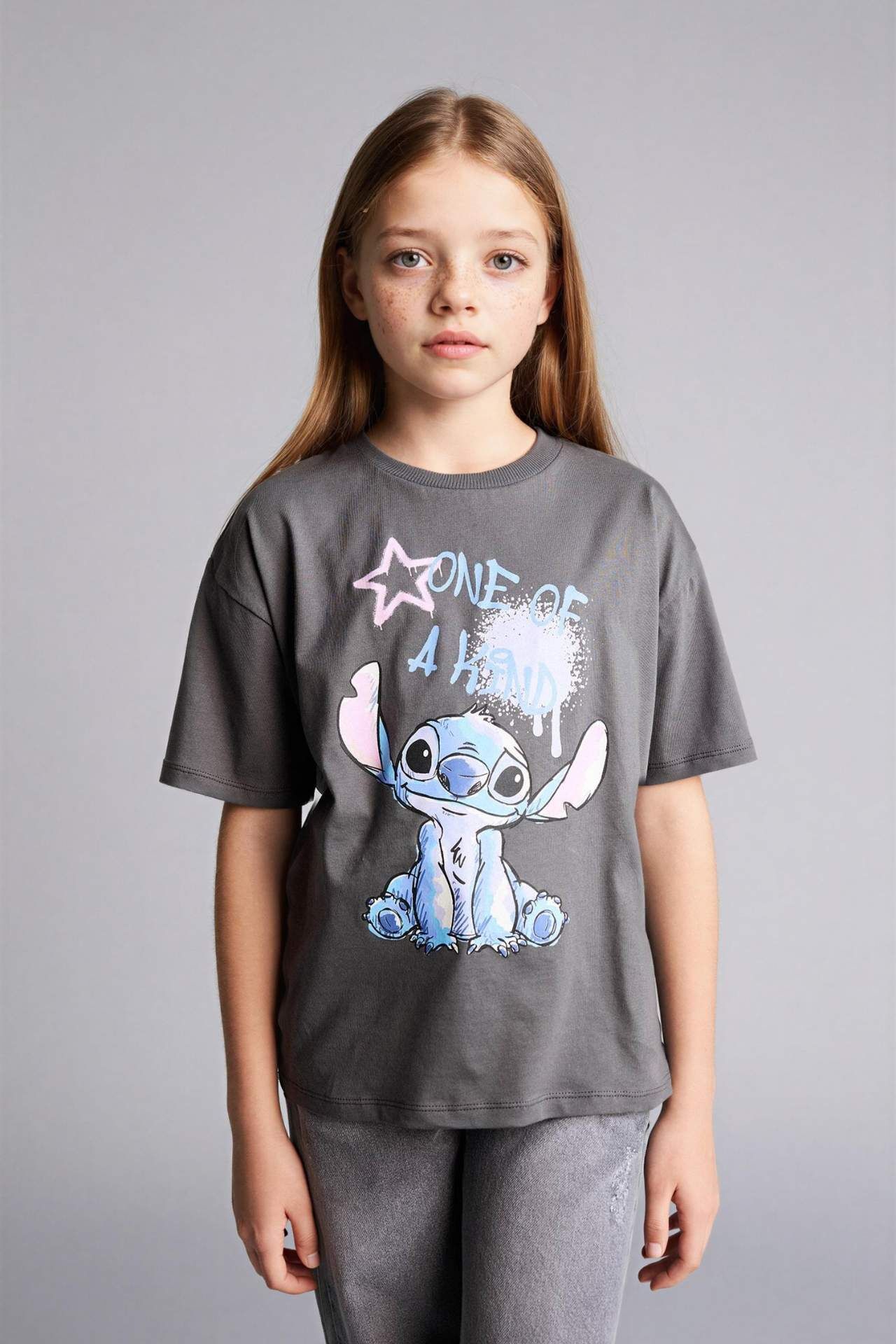 Dısney Lılo & Stıtch Relax Fıt Bisiklet Yaka Kısa Kollu Tişört Kız Çocuk