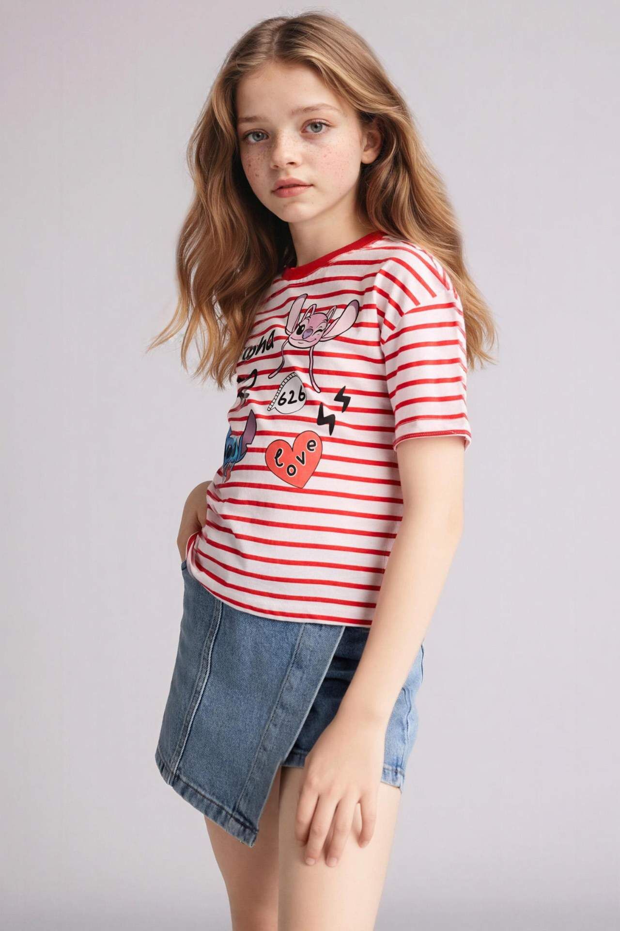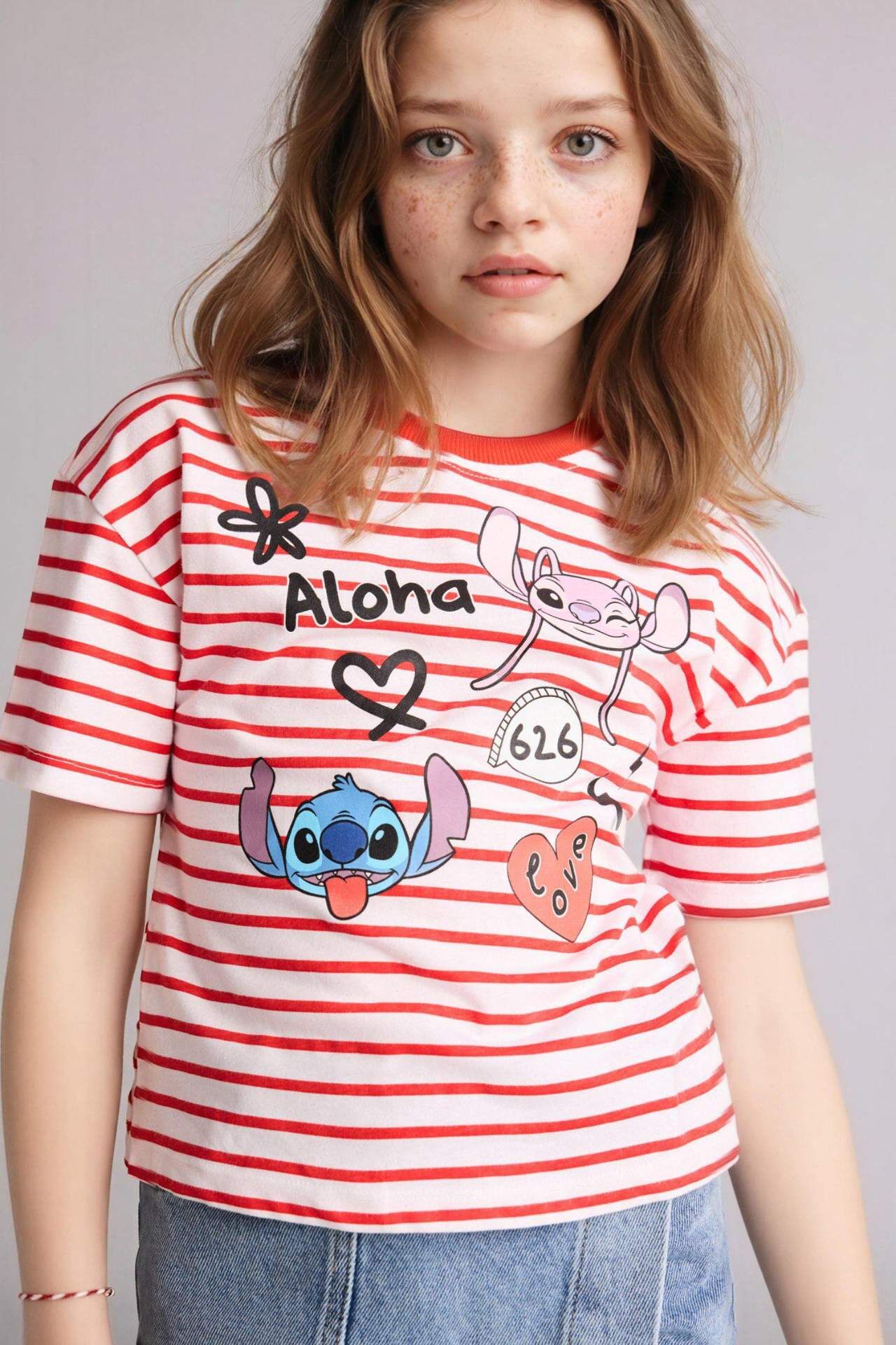 Dısney Lılo & Stıtch Relax Fıt Bisiklet Yaka Kısa Kollu Tişört Kız Çocuk