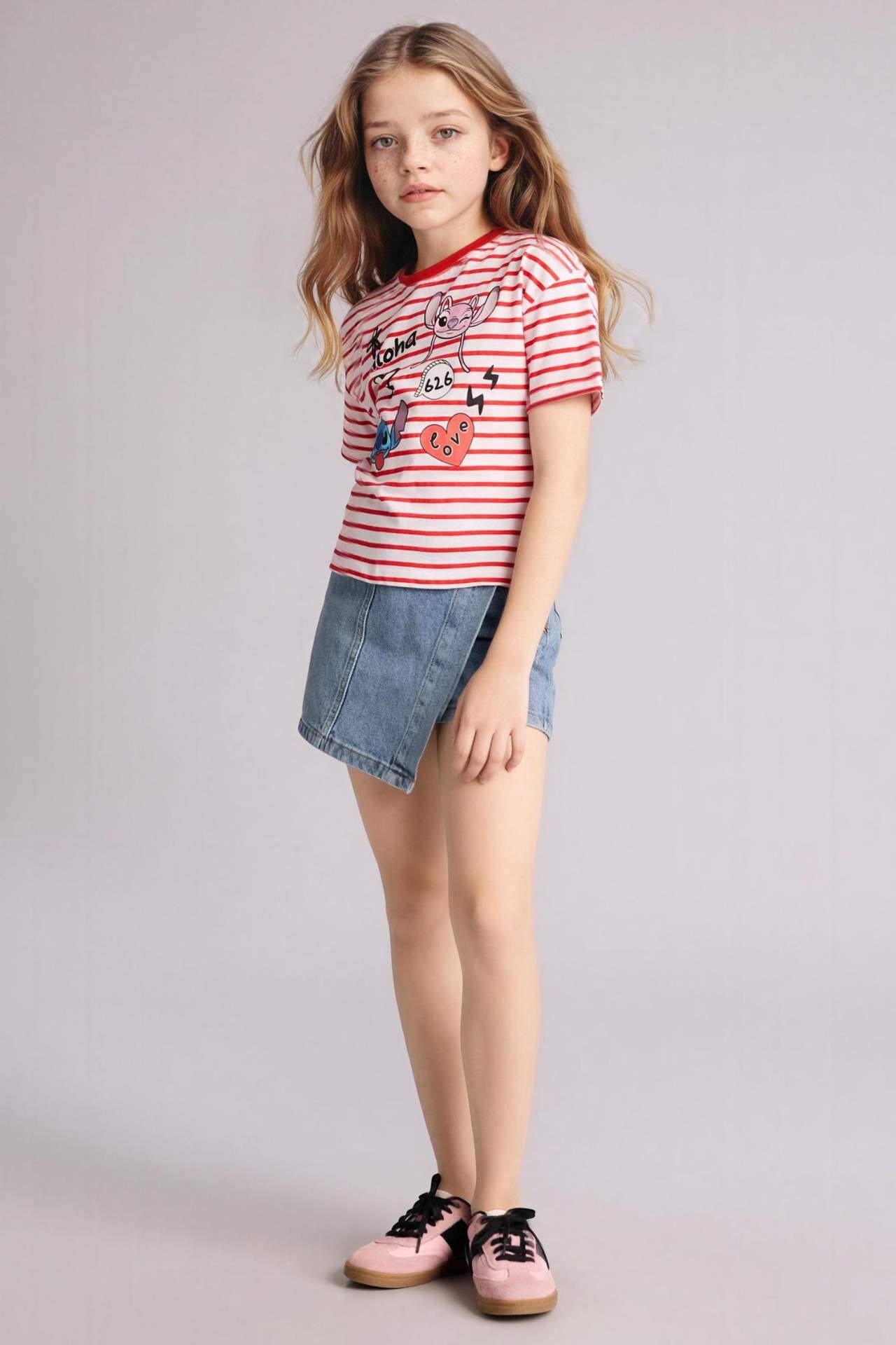 Disney Lilo & Stitch baskılı kız çocuk tişörtü, sevimli karakter detayıyla miniklerin favorisi olmaya aday. Yumuşak ve rahat kumaşı sayesinde gün boyu konfor sunarken, renkli tasarımıyla günlük kombinlere eğlenceli bir hava katar. Pamuk 100% Manken Bedeni: Göğüs: 62 Boy: 1,24 Basen: 73 Bel: 53