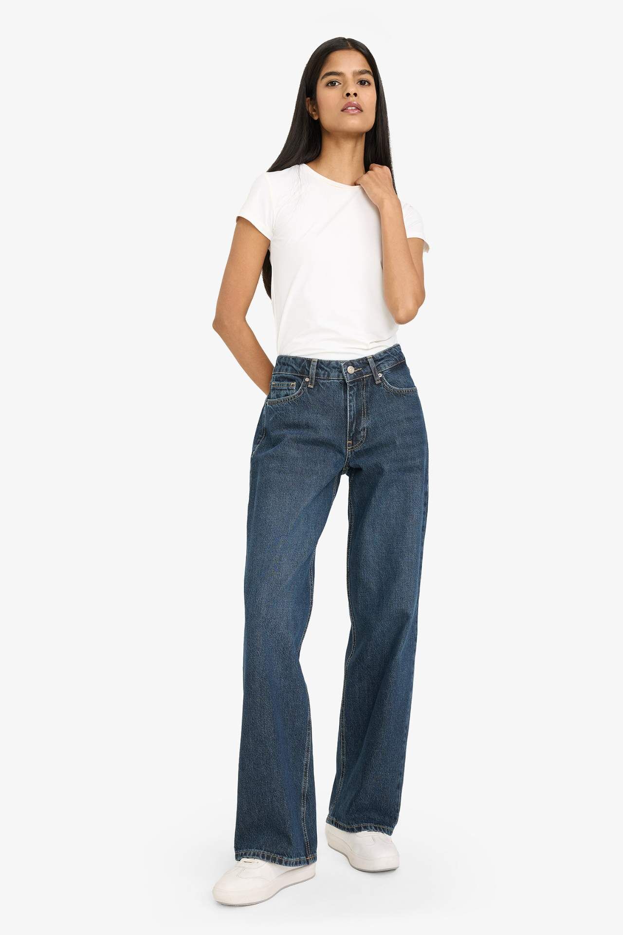 Düşük bel uzun jean yıkamalı pantolon, modern kesimi ve yıkamalı görünümüyle dikkat çeker. Uzun paça formu bacak boyunu daha uzun gösterirken rahat bir kullanım sunar. Günlük ve şehir stiline kolayca uyum sağlar. Pamuk 100%,Elastan 0%