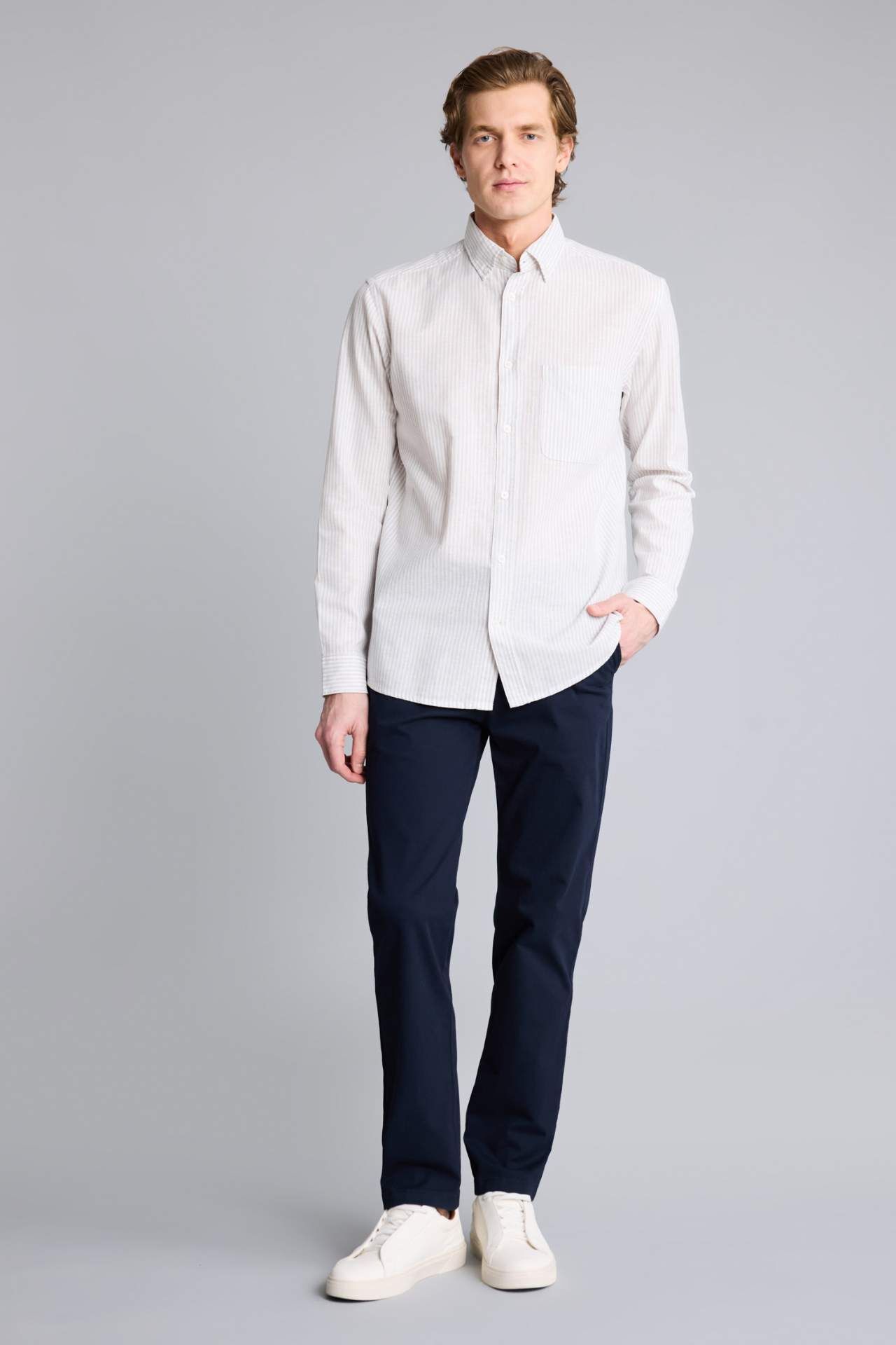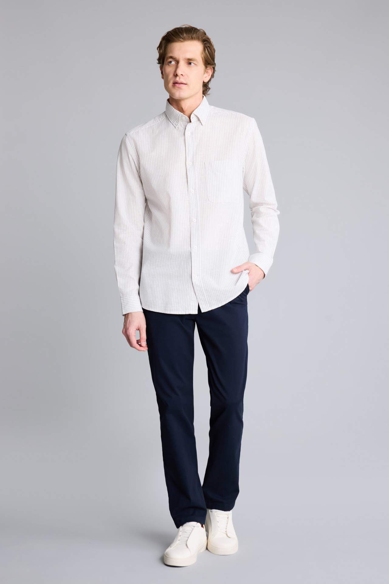Dizden bileğe kadar aynı genişlikte inen düz paça kesimi, bacak boyunu daha dengeli gösteren zamansız bir silüet sunar. Vücudu sıkmayan konforlu yapısı ve kaliteli kumaş dokusu, gün boyu hem hareket özgürlüğü hem de derli toplu bir görünüm vadeder. Minimalist tasarımı sayesinde hem klasik gömleklerle ofis şıklığında hem de tişörtlerle günlük kombinlerde çok yönlü bir kullanım sağlar. Pamuk 98%,Elastan 2% Manken Bedeni: Göğüs: 98 Boy: 1,86 Basen: 99 Bel: 78