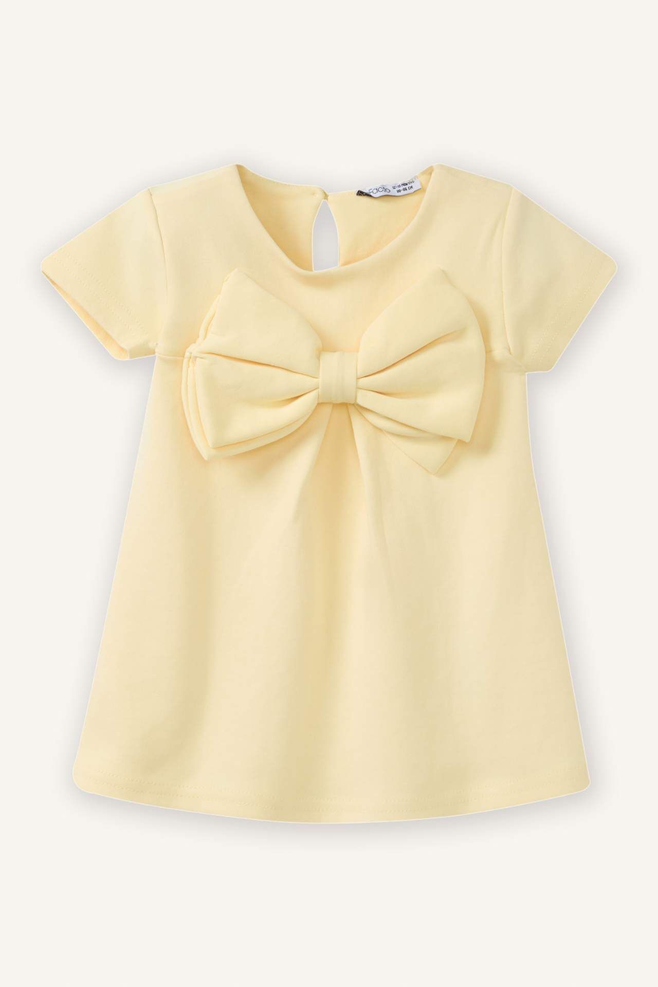 Kız bebek fiyonk detaylı elbise, yumuşak ve hafif kumaşıyla gün boyu rahatlık sağlar. Sevimli fiyonk tasarımı, miniklere zarif ve şık bir görünüm kazandırır. Pamuk 67%,Poliester 33%