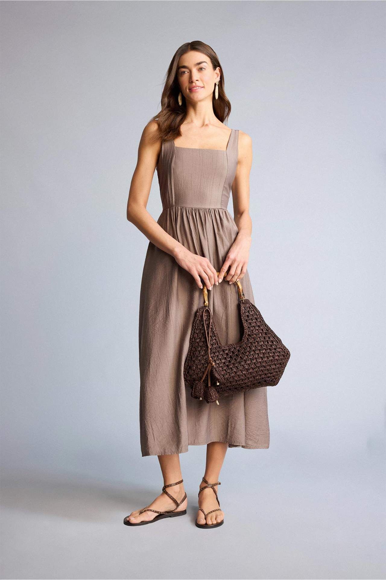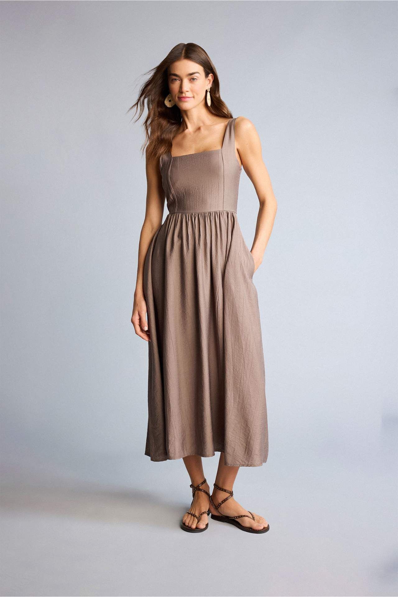Askılı Midi Elbise, hafif kumaşı ve zarif midi boyu ile şıklığı ve rahatlığı bir arada sunar. İnce askı detayları, modern ve feminen bir görünüm sağlar. Poliamid 15%,Viskoz 85% Manken Bedeni: Göğüs: 89 Boy: 1,78 Basen: 92 Bel: 63