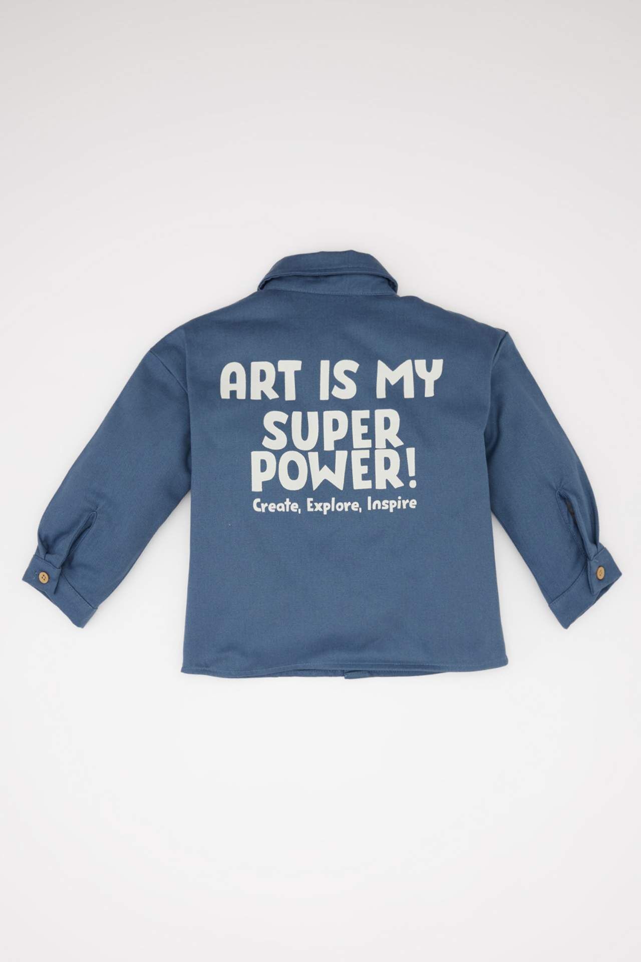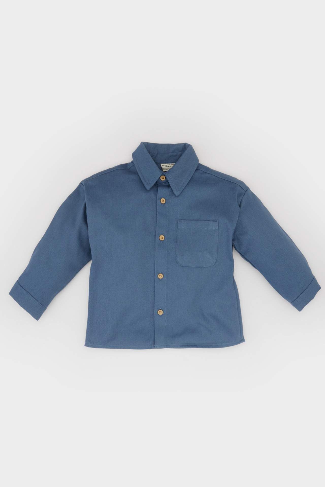 DeFacto Erkek Bebek Gömlek Yaka Slogan Baskılı Gabardin Uzun Kollu Gömlek