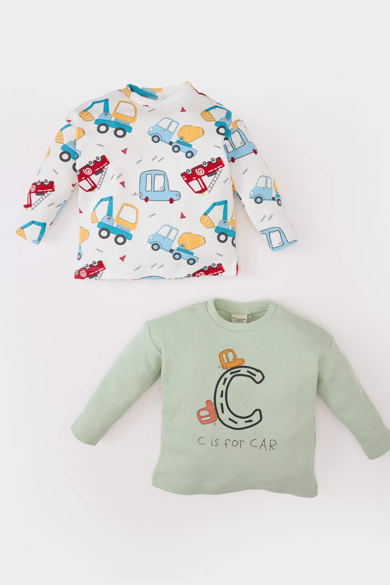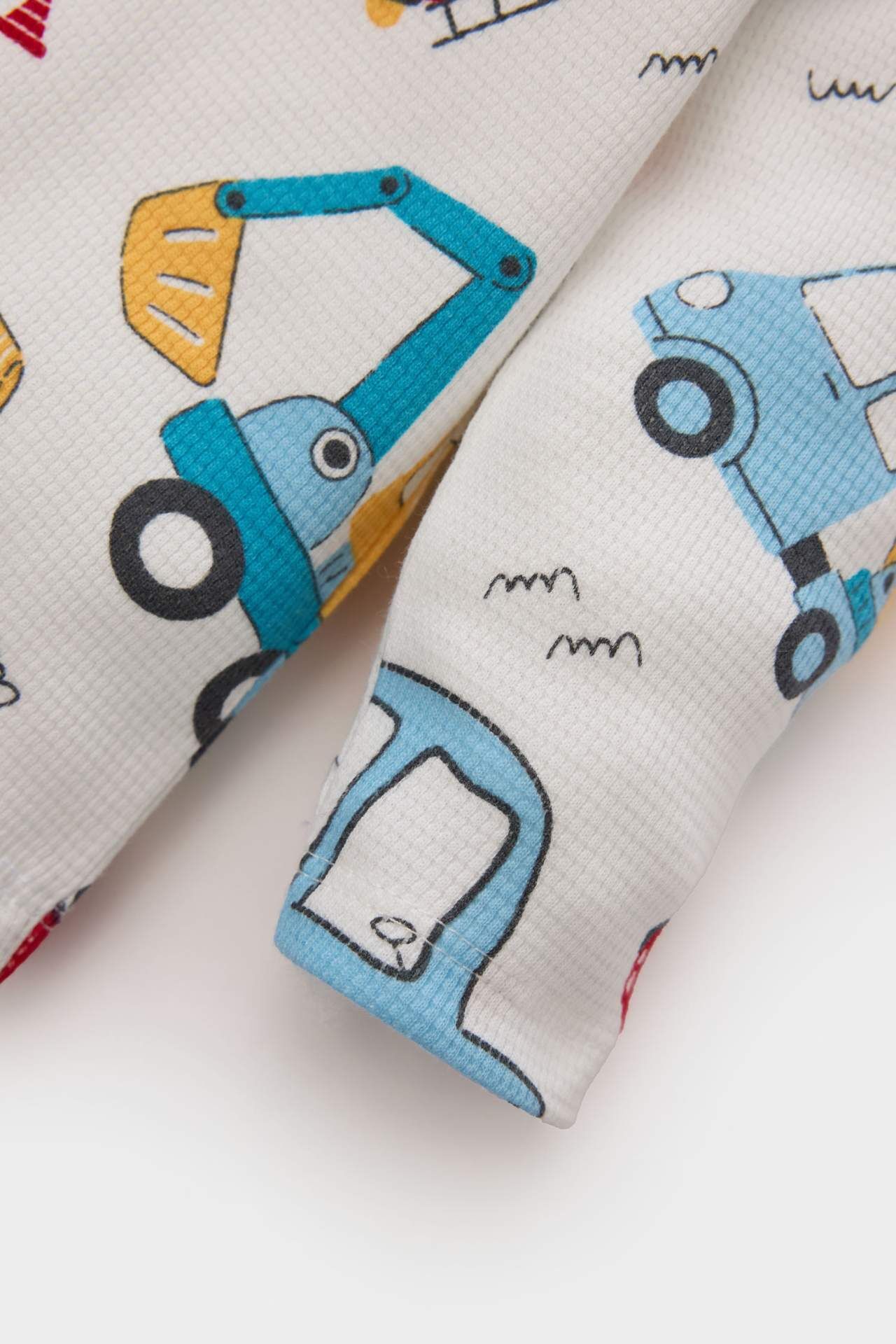 DeFacto Erkek Bebek Yeni Doğan Bisiklet Yaka Araç Baskılı Waffle 2'li Uzun Kollu Çıtçıtlı Body