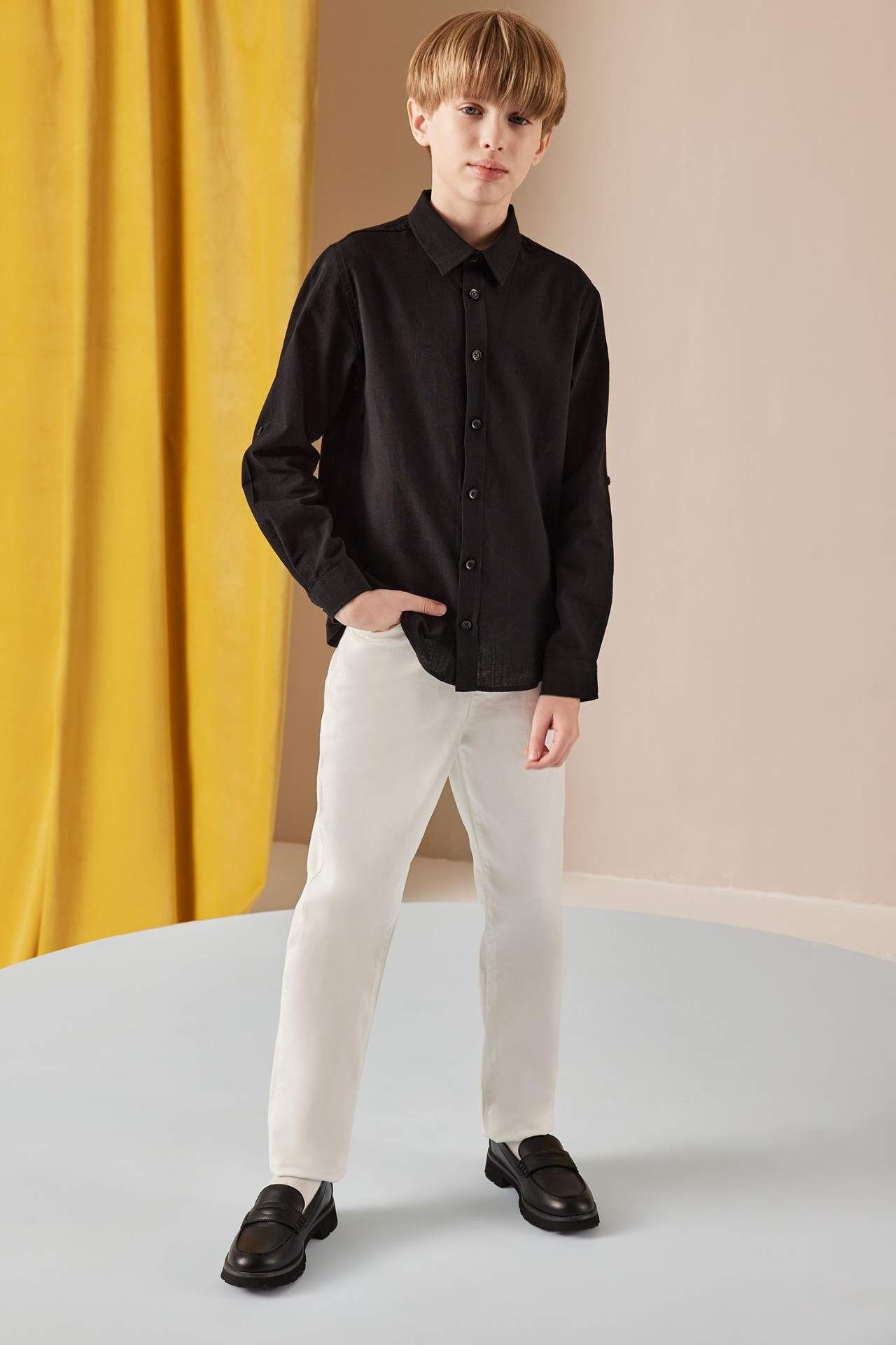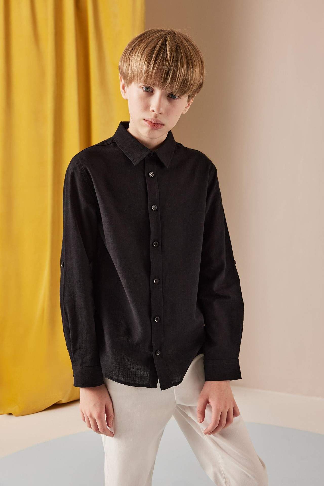 DeFacto Erkek Çocuk 23 Nisan Çocuk Bayramı Regular Fit Polo Yaka Keten Görünümlü Uzun Kollu Gömlek