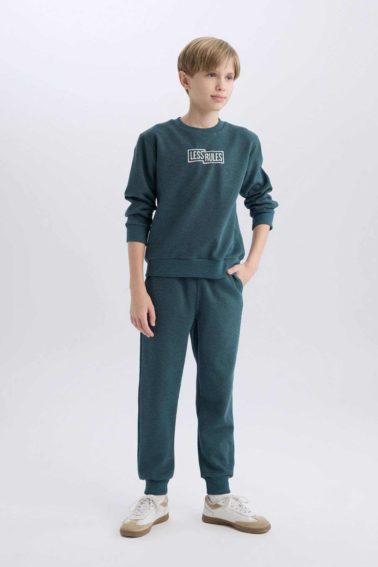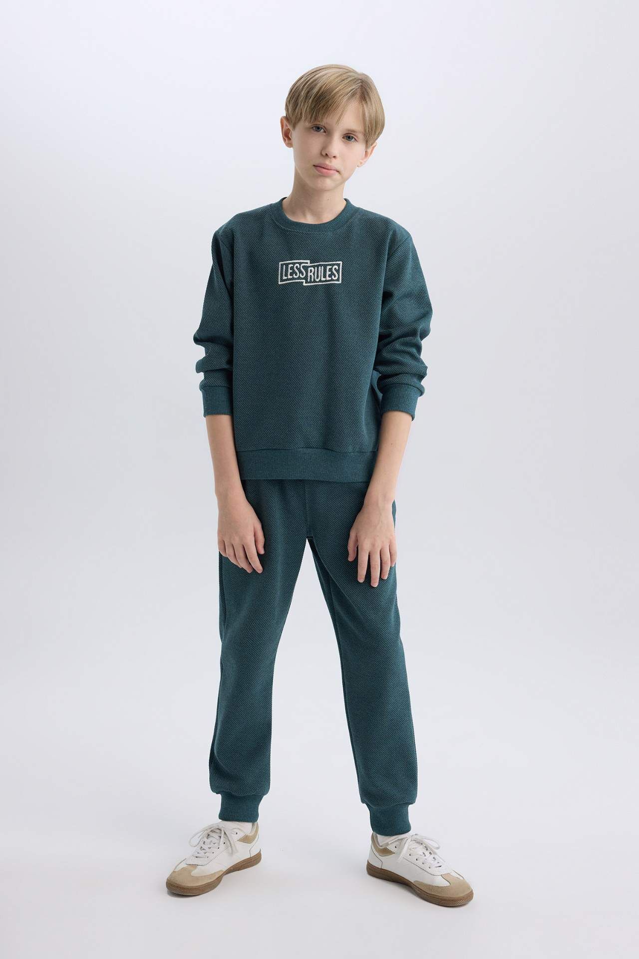 DeFacto Erkek Çocuk 2'li Takım Bisiklet Yaka Baskılı Sweatshirt Beli Lastikli Eşofman Altı D9853A825SPBE787