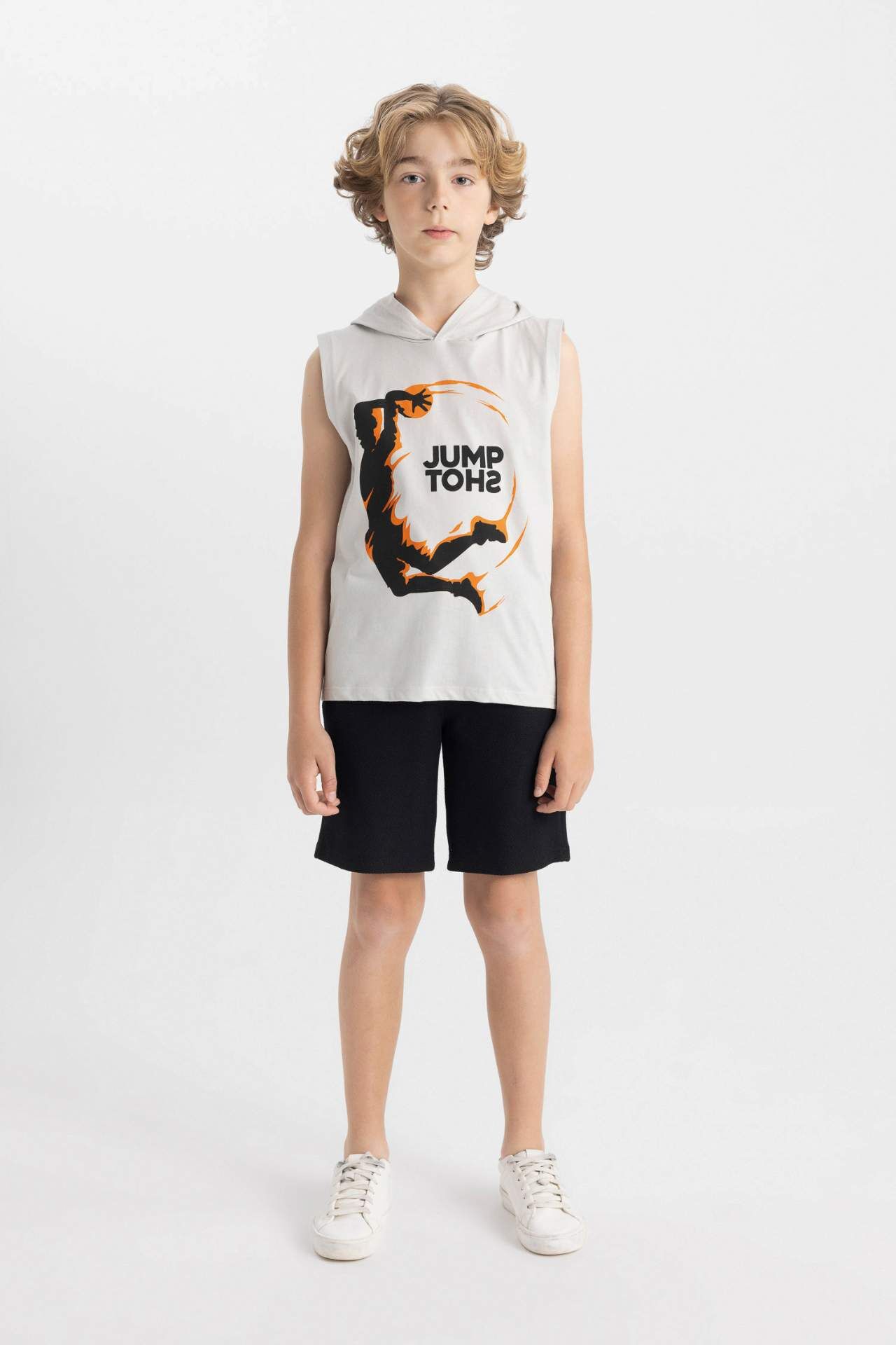 DeFactoFit Erkek Çocuk Baskılı Kapüşonlu Atlet Şort 2'li Takım