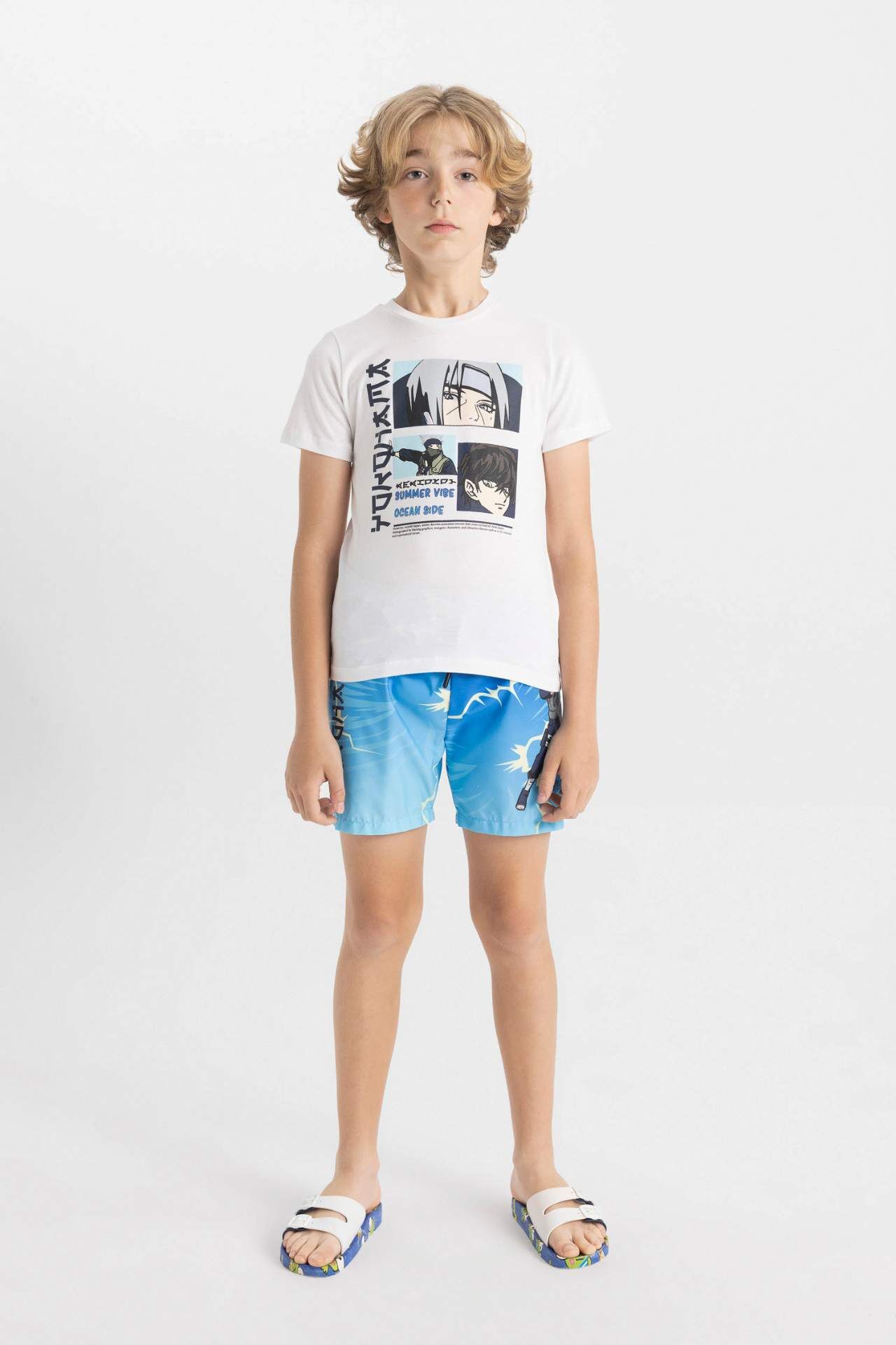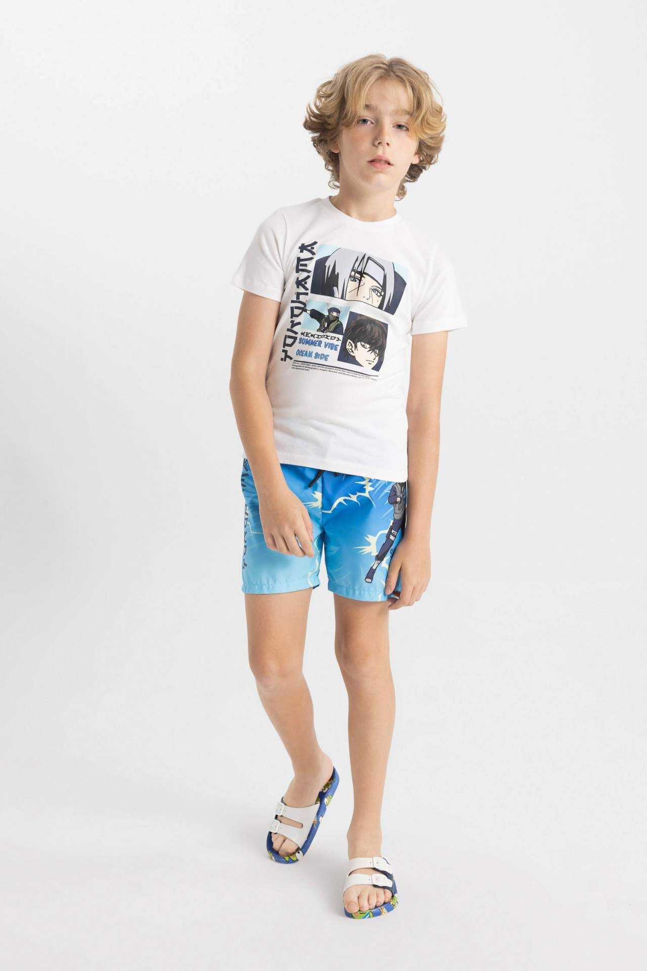 DeFacto DeFactoFit Erkek Çocuk Baskılı Kısa Kollu Tişört Deniz Şortu 2'li Takım C3150A824HSTR124