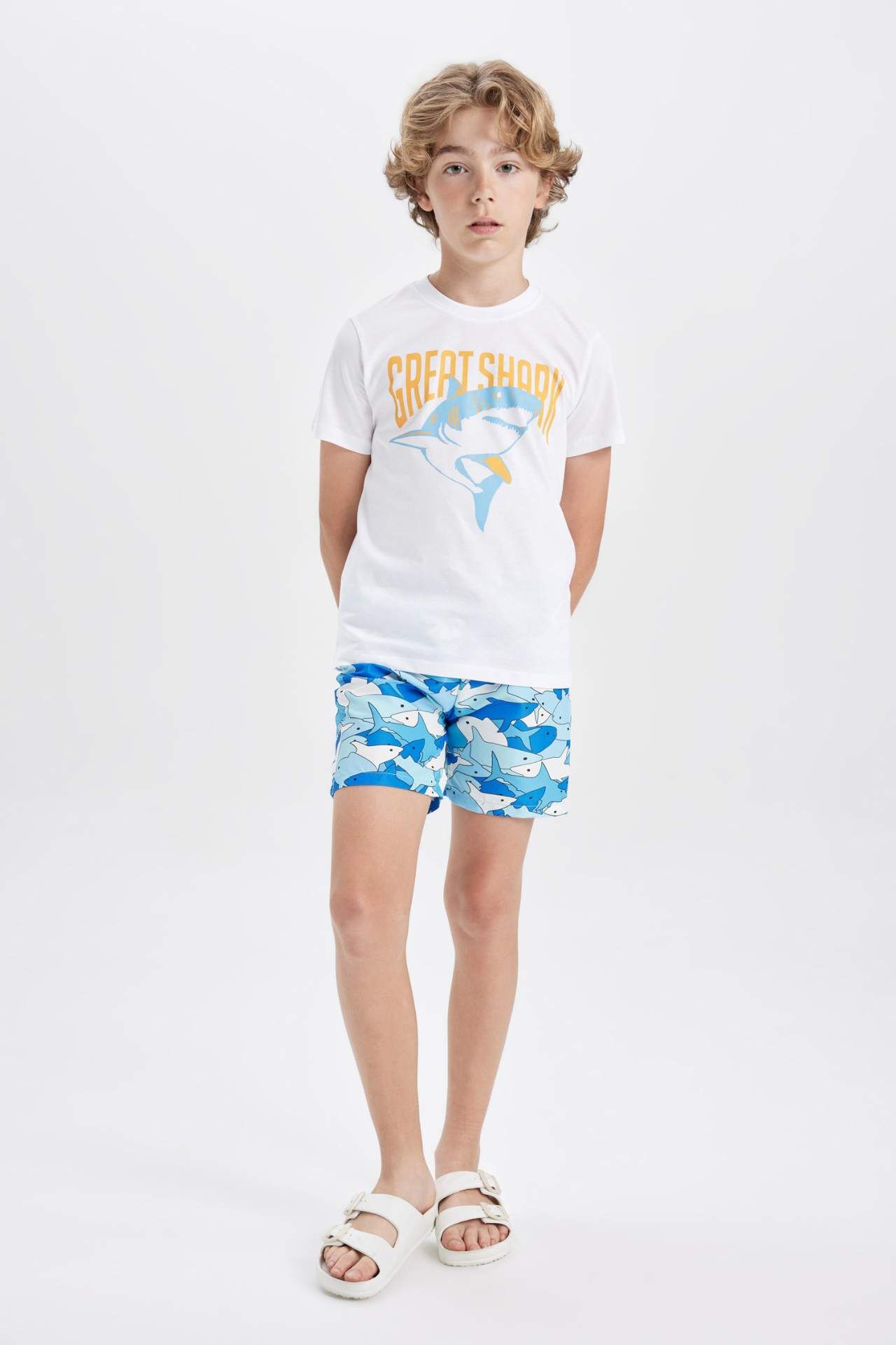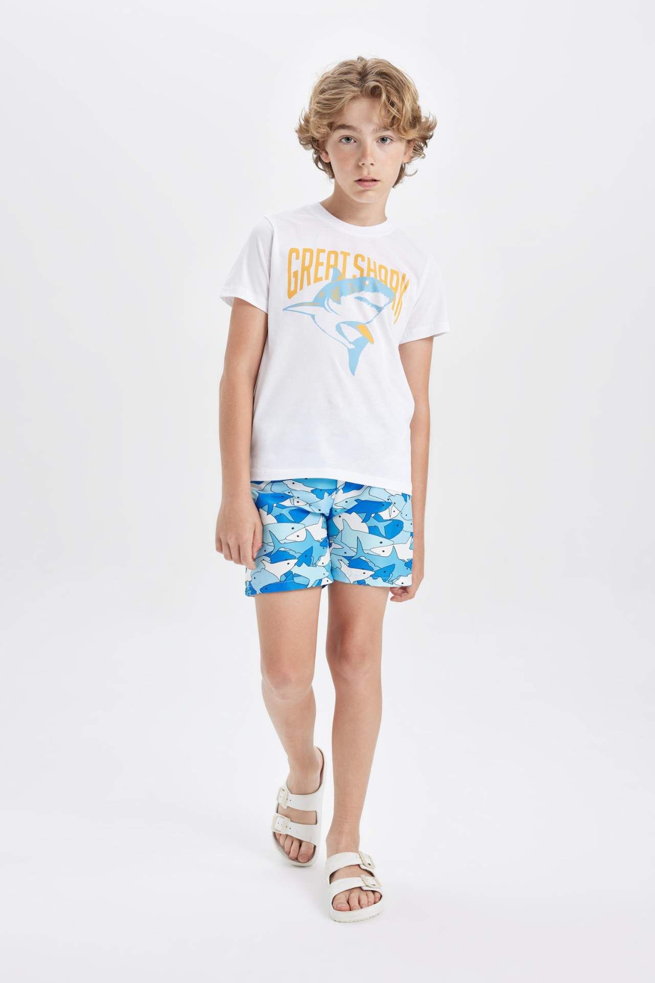 DeFacto DeFactoFit Erkek Çocuk Baskılı Kısa Kollu Tişört Deniz Şortu 2'li Takım C4531A824HSBE335