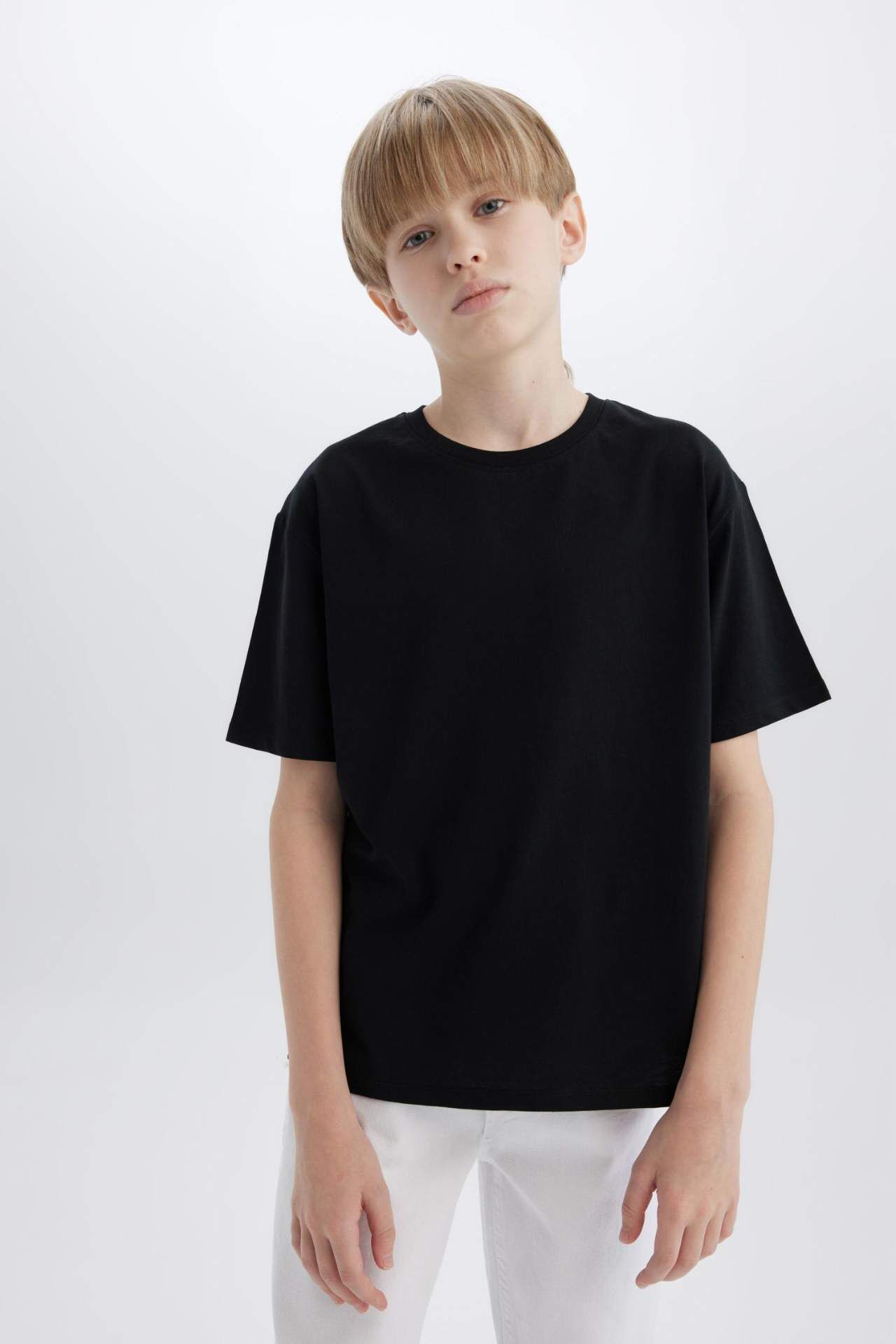DeFacto Erkek Çocuk Bisiklet Yaka Basic Düz Kısa Kollu Tişört K1687A625SMBK81