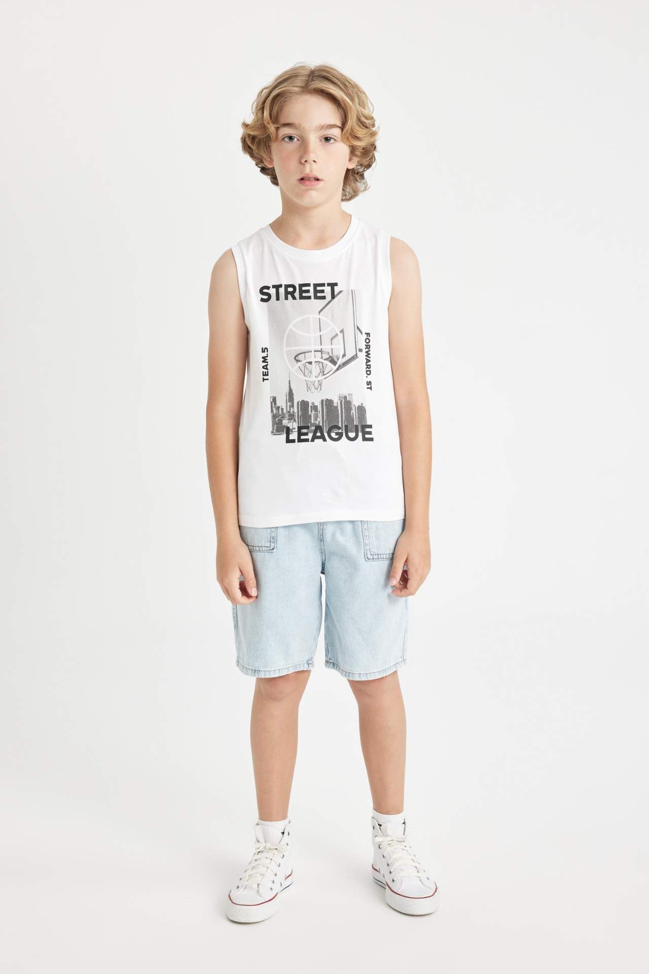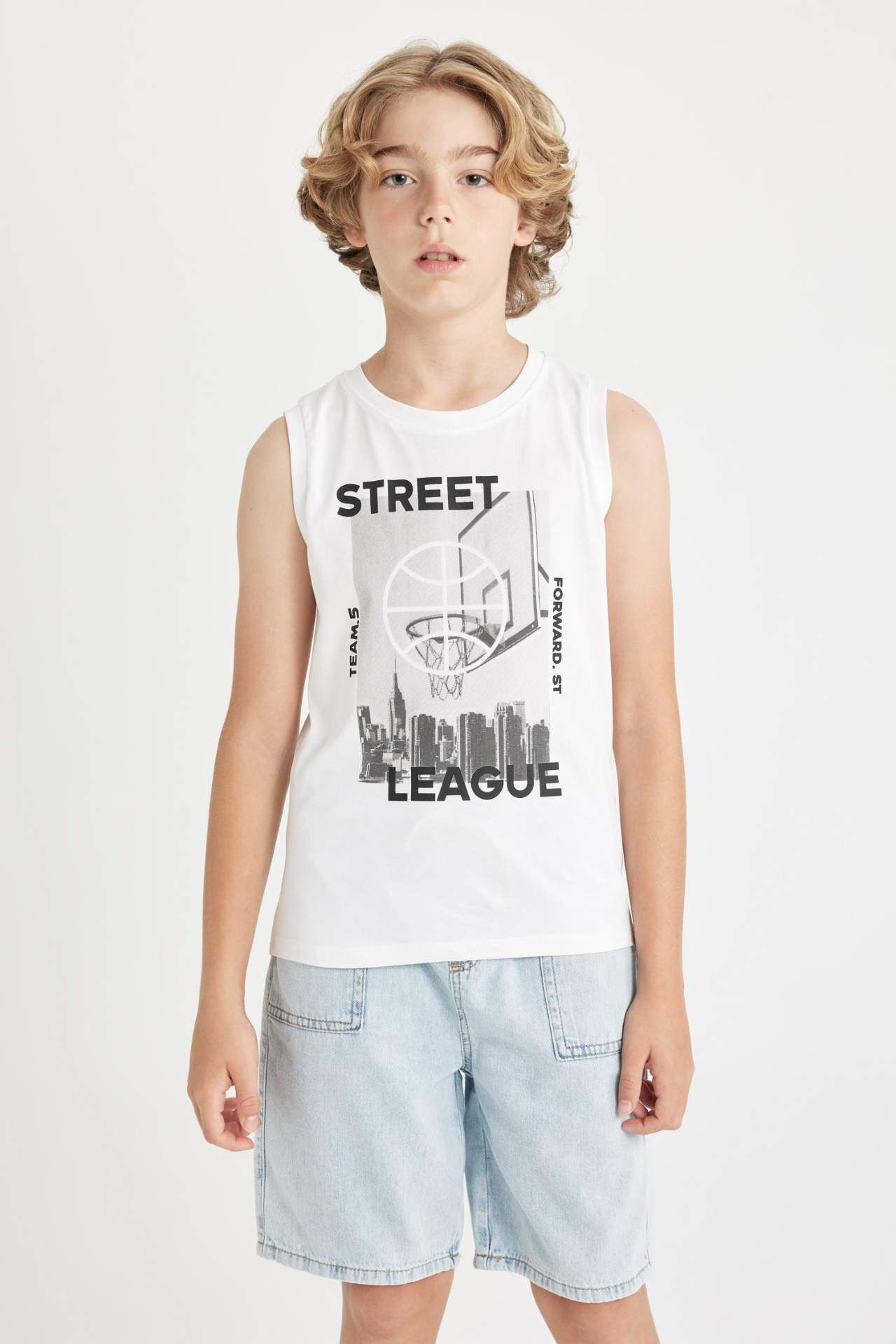 DeFacto DeFactoFit Erkek Çocuk Bisiklet Yaka Baskılı Atlet D0781A824HSWT34