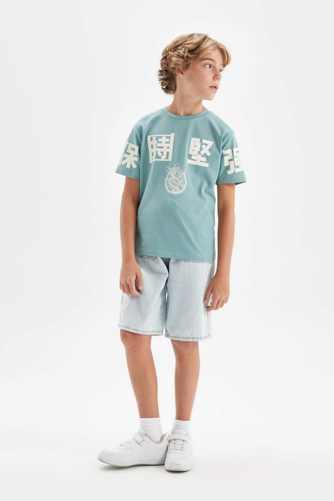 DeFactoFit Erkek Çocuk Bisiklet Yaka Baskılı Kısa Kollu Tişört A0450A824HSGN1176