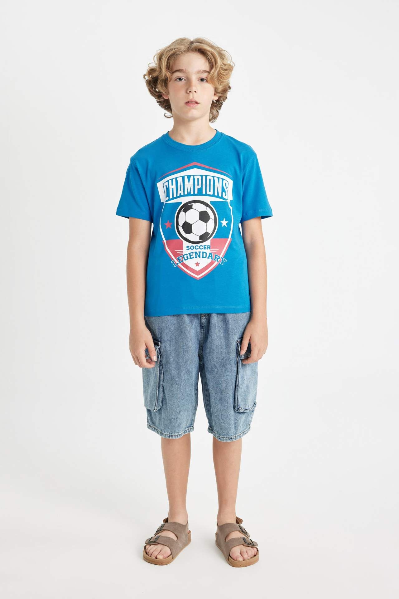 DeFacto DeFactoFit Erkek Çocuk Bisiklet Yaka Baskılı Kısa Kollu Tişört C6498A824HSBE381