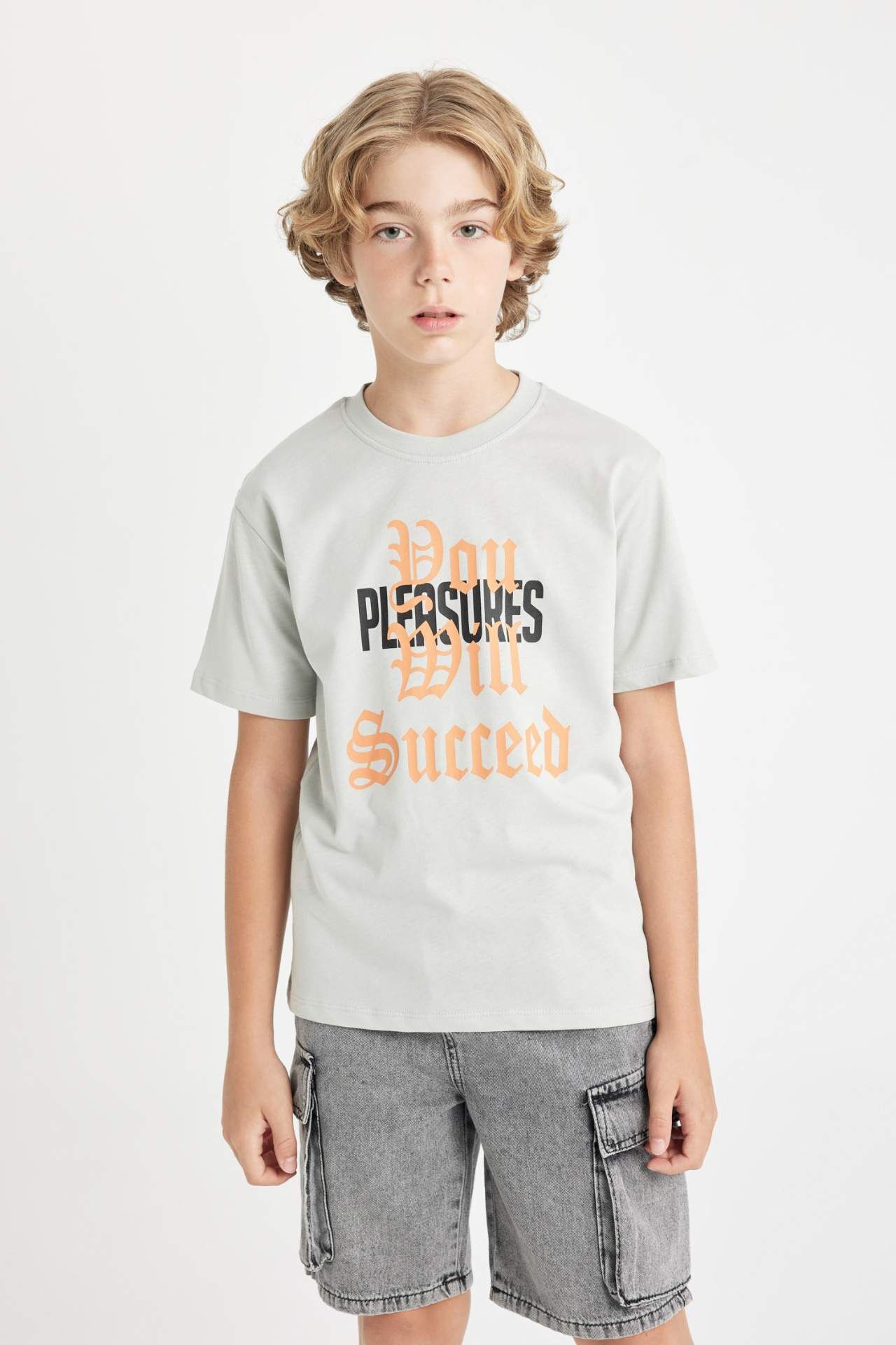DeFacto DeFactoFit Erkek Çocuk Bisiklet Yaka Baskılı Kısa Kollu Tişört D0398A824HSGR107