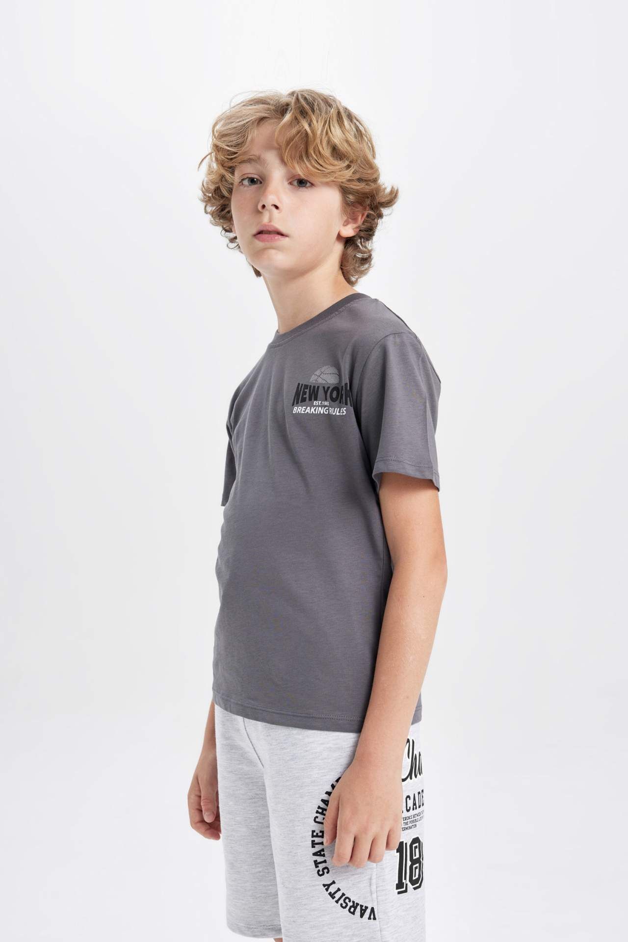 DeFactoFit Erkek Çocuk Bisiklet Yaka Baskılı Kısa Kollu Tişört D0443A824SMGR47