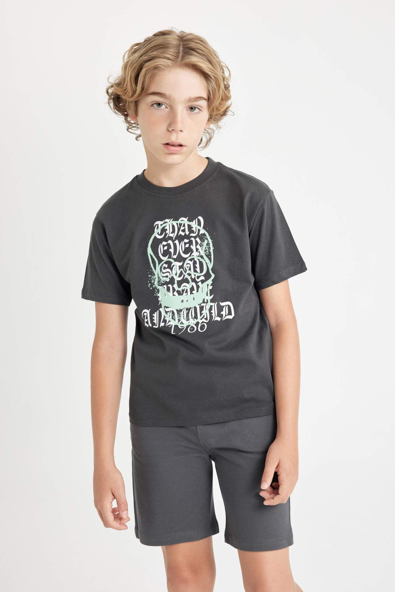 DeFactoFit Erkek Çocuk Bisiklet Yaka Baskılı Kısa Kollu Tişört D2226A824HSAR213