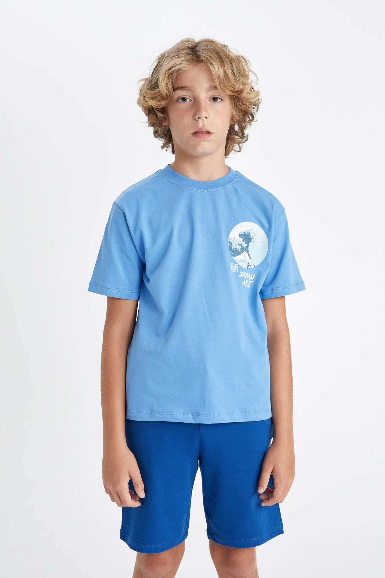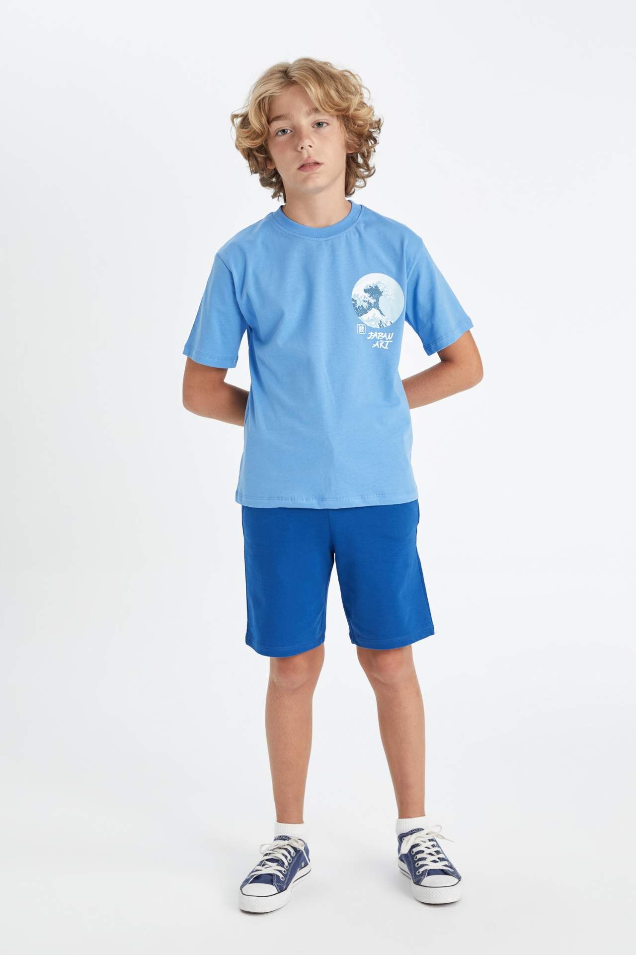 DeFacto DeFactoFit Erkek Çocuk Bisiklet Yaka Baskılı Kısa Kollu Tişört D2229A824HSBE86