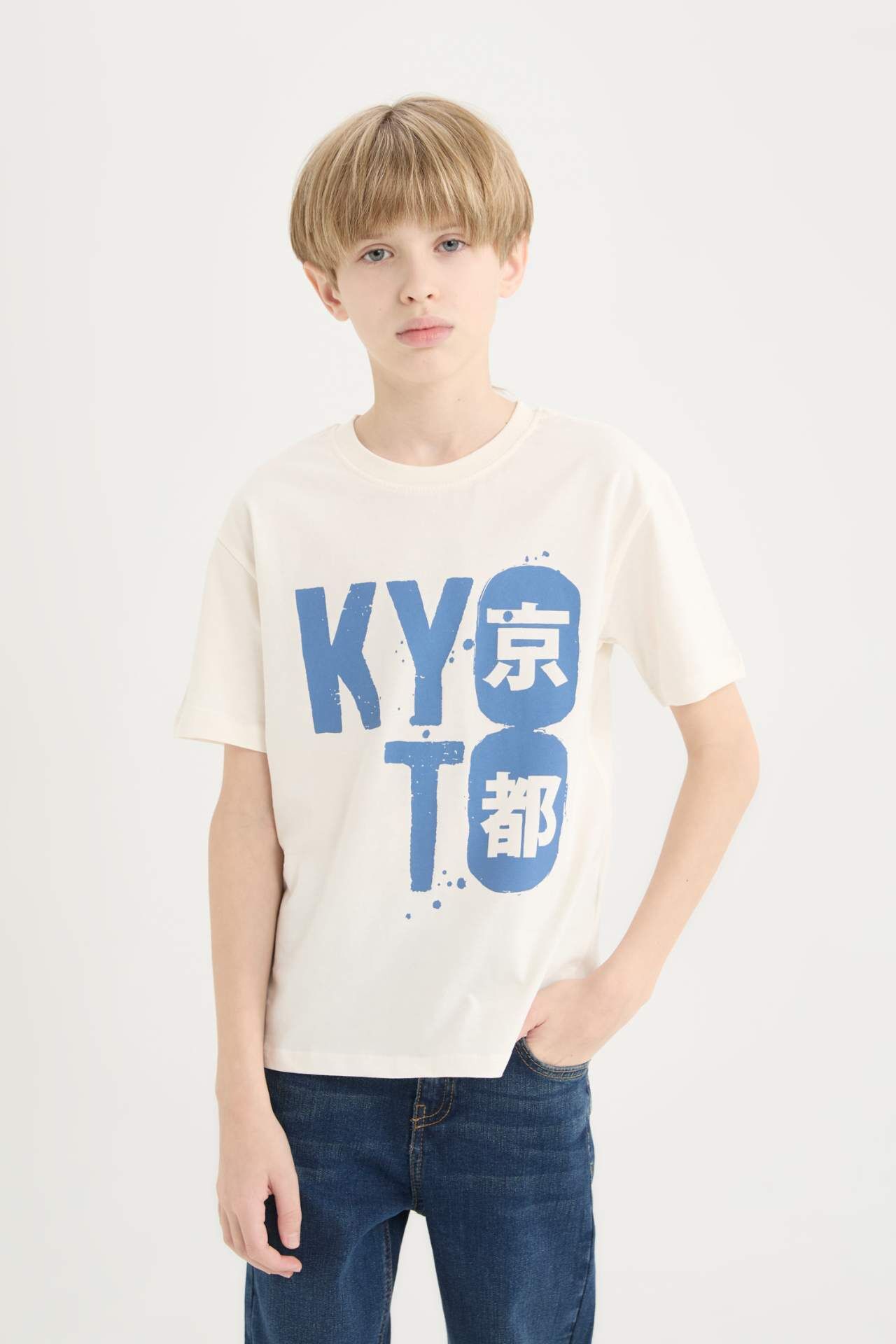 DeFacto Erkek Çocuk Bisiklet Yaka Baskılı Kısa Kollu Tişört D9258A825SMER100
