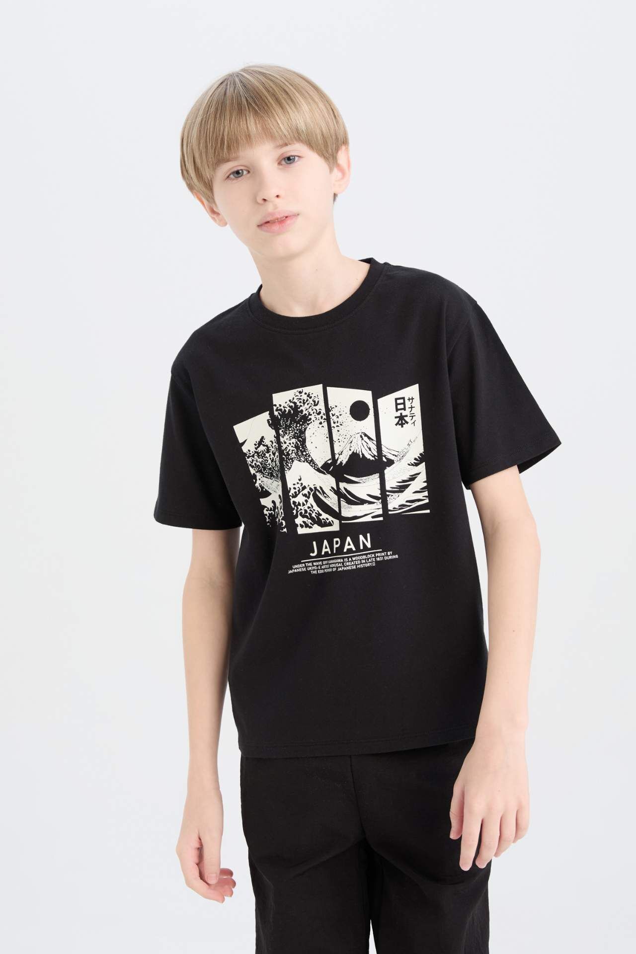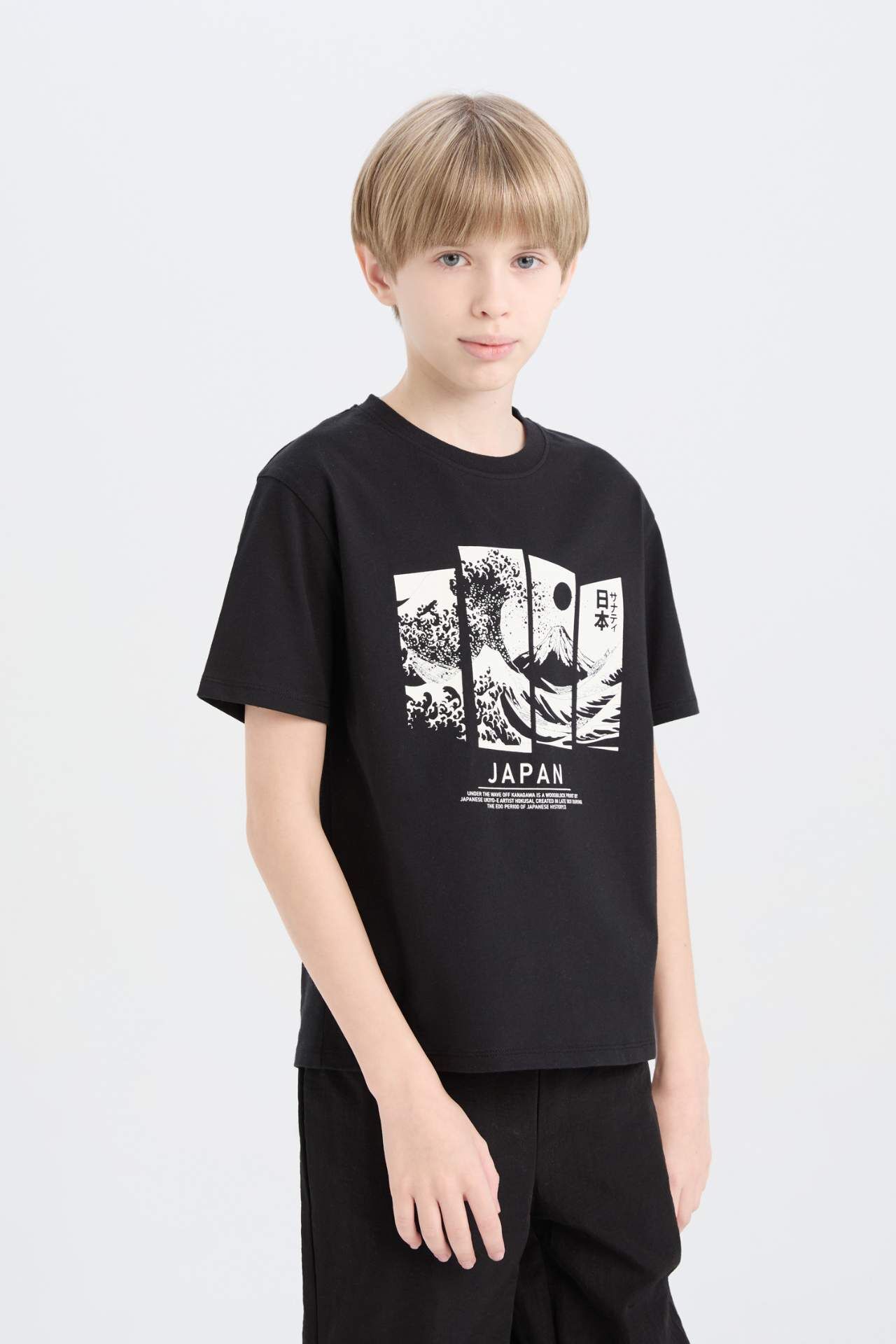 DeFacto Erkek Çocuk Bisiklet Yaka Baskılı Kısa Kollu Tişört D9278A825SMBK81