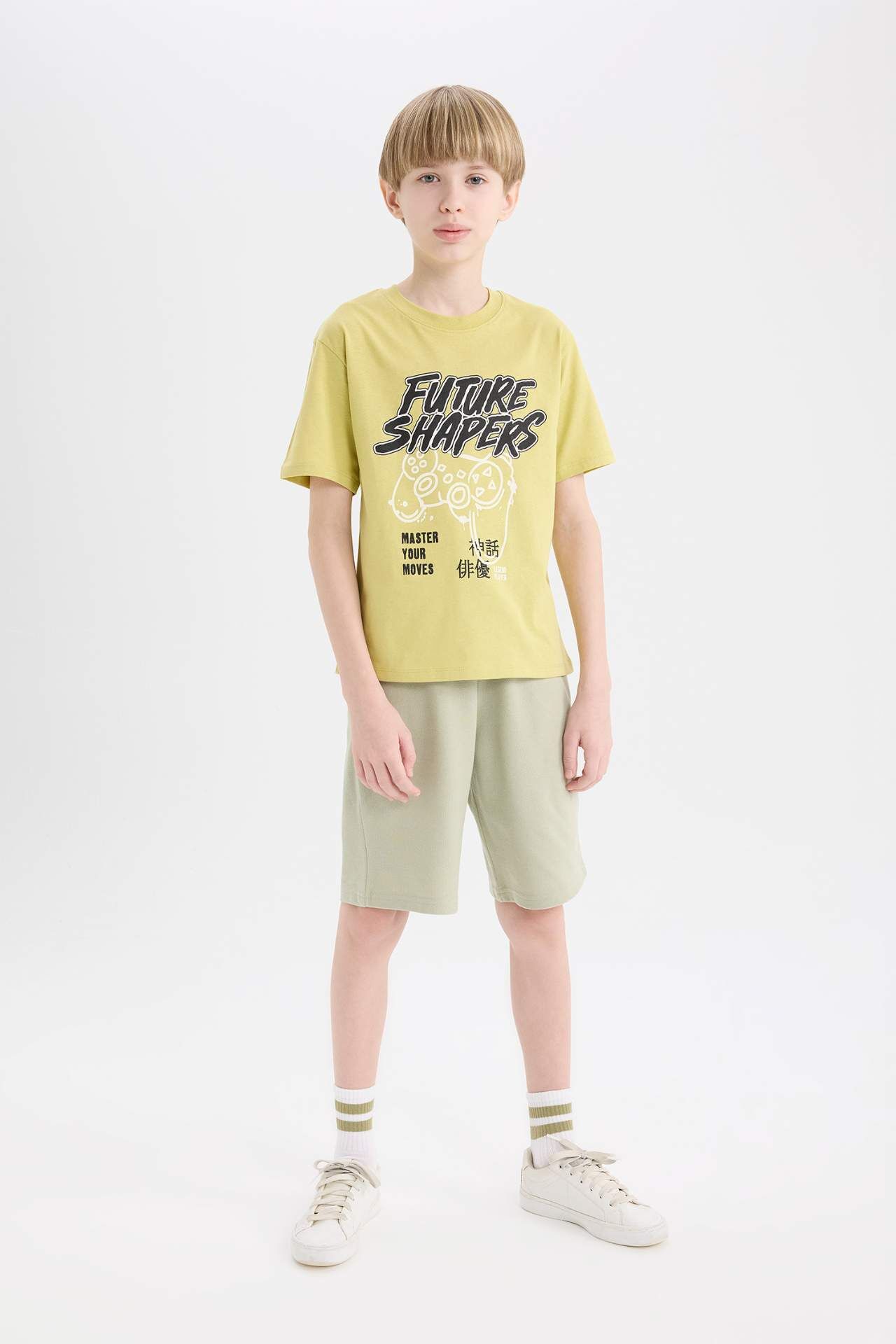 DeFacto Erkek Çocuk Bisiklet Yaka Baskılı Kısa Kollu Tişört D9282A825SMGN1262