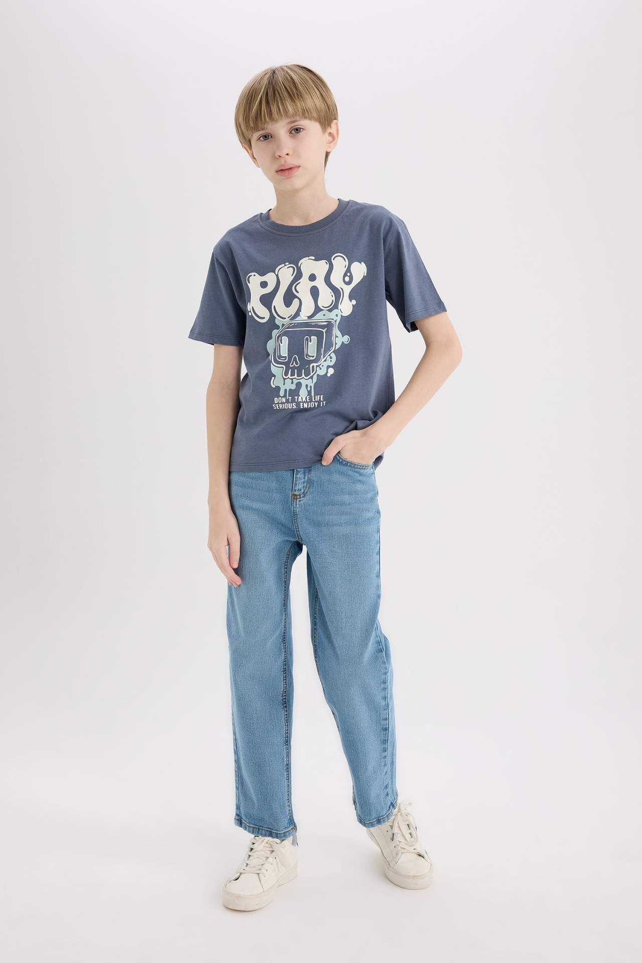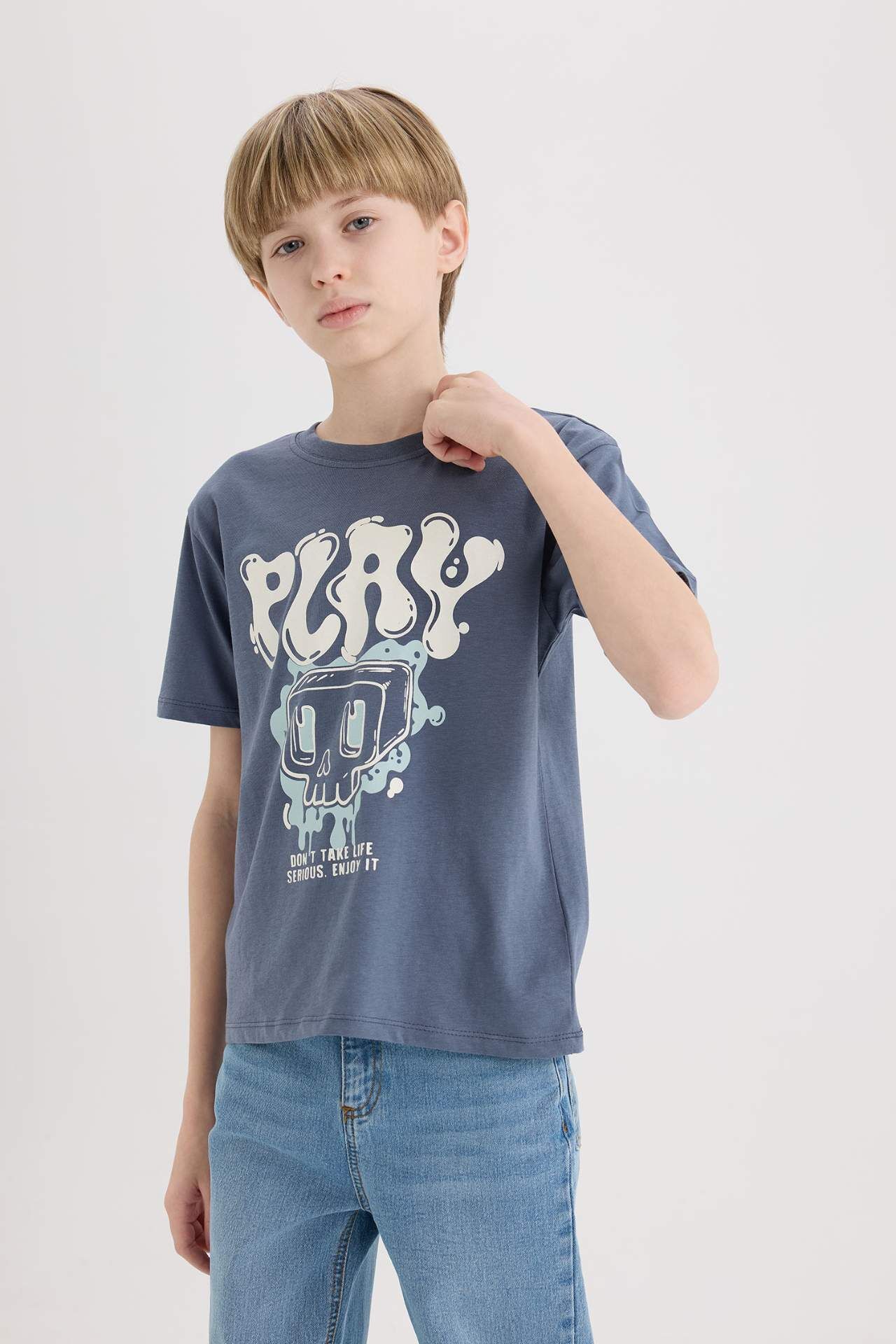 DeFacto Erkek Çocuk Bisiklet Yaka Baskılı Kısa Kollu Tişört D9283A825SMIN267