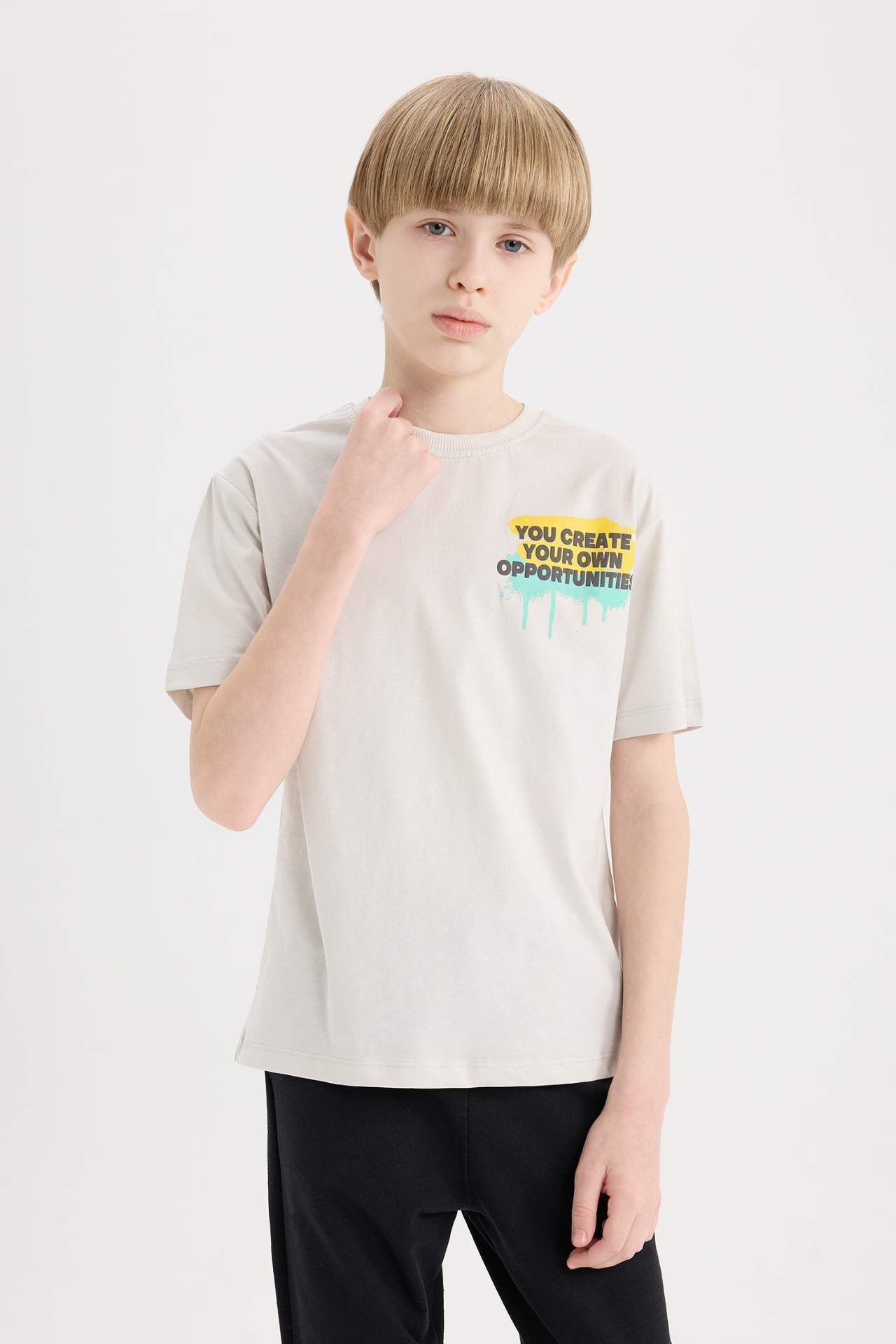DeFacto Erkek Çocuk Bisiklet Yaka Baskılı Kısa Kollu Tişört D9288A825SMGR503